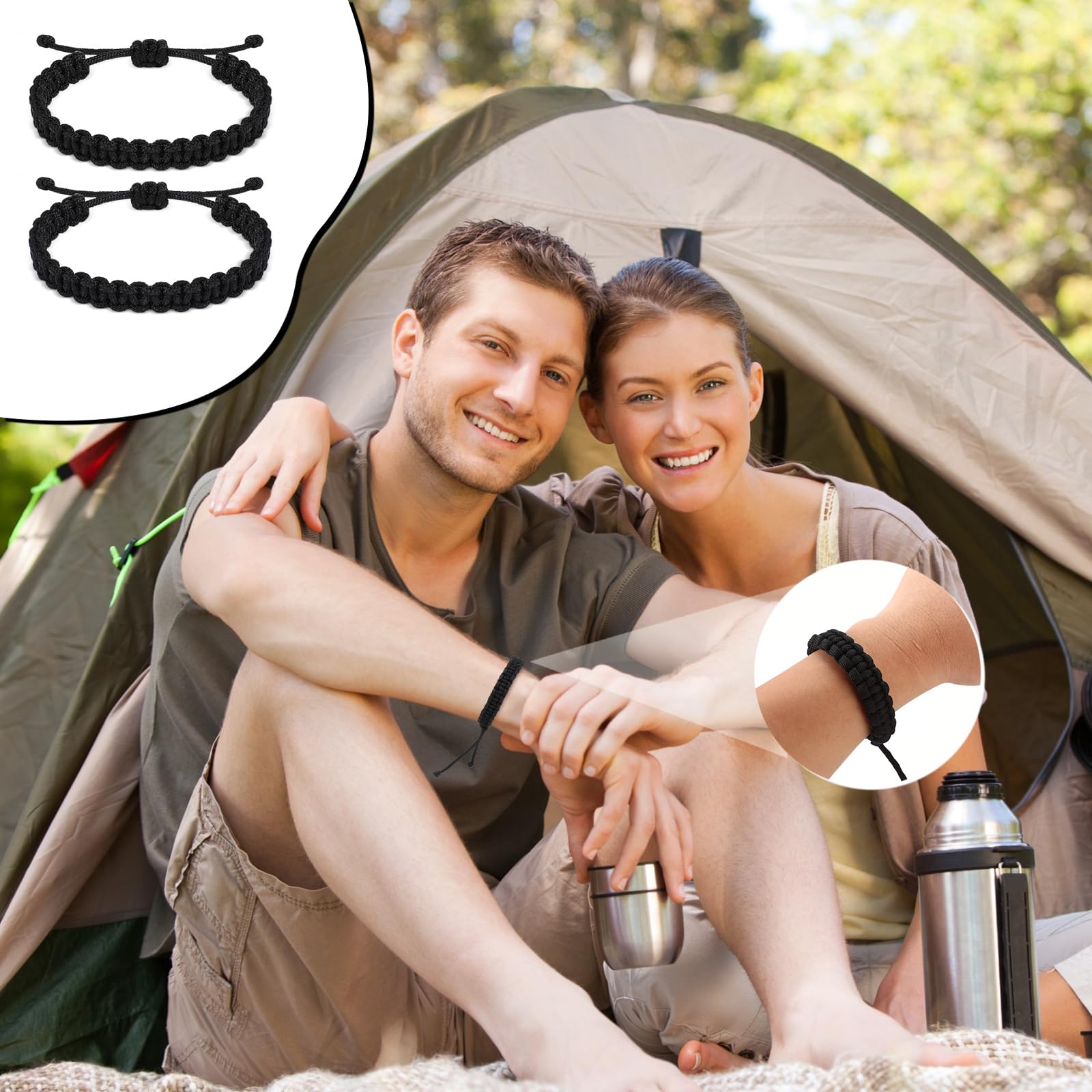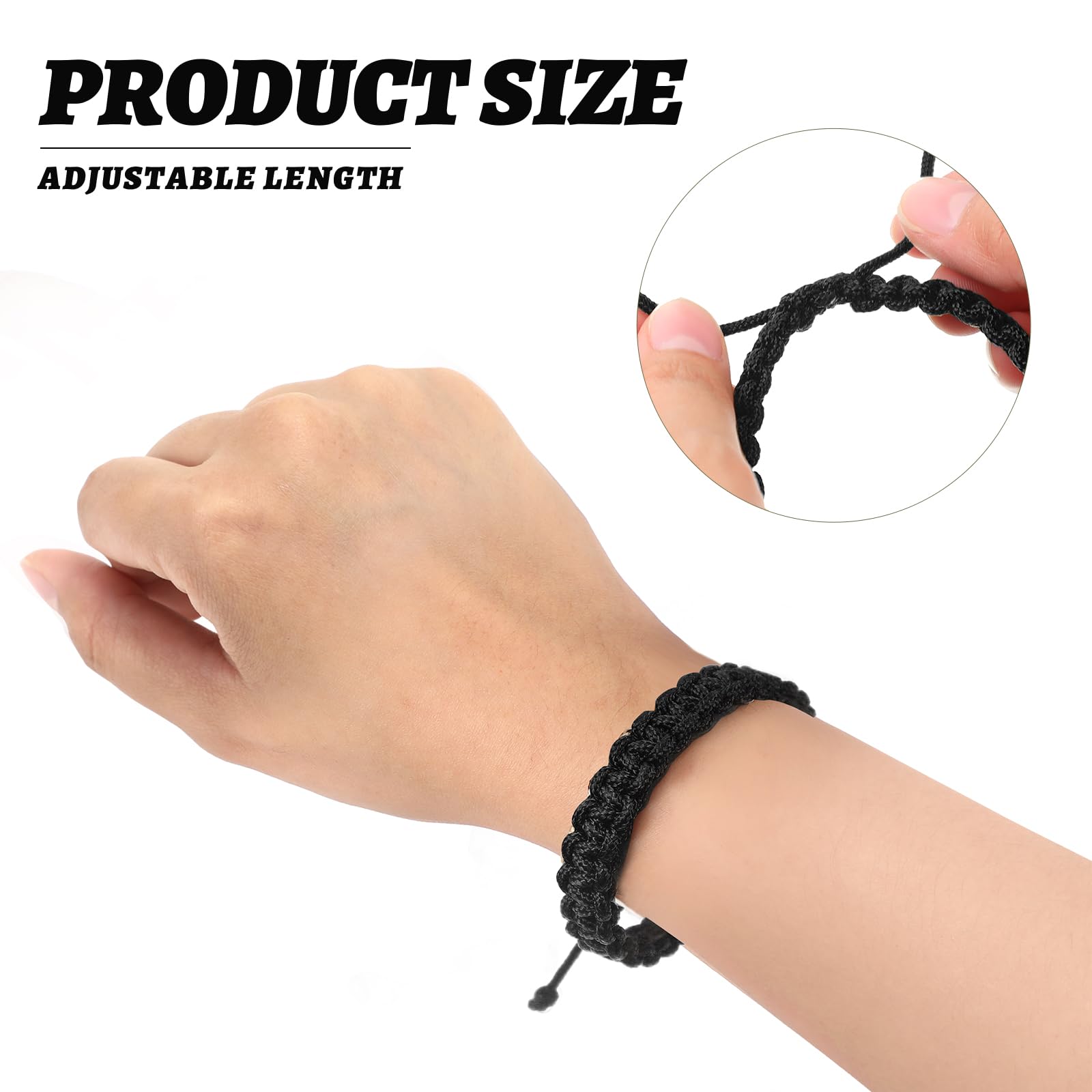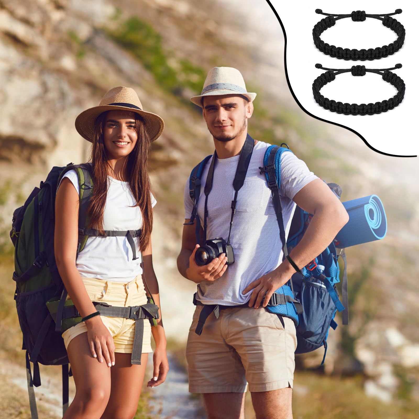 Maitys Pack of 2 Paracord Survival Bracelets for Men Braided Paracord Wristband Adjustable Tactical Handmade Unisex Friendship Bracelets Rope for Outdoor Sports Camping Hiking Travelling Gift, Black