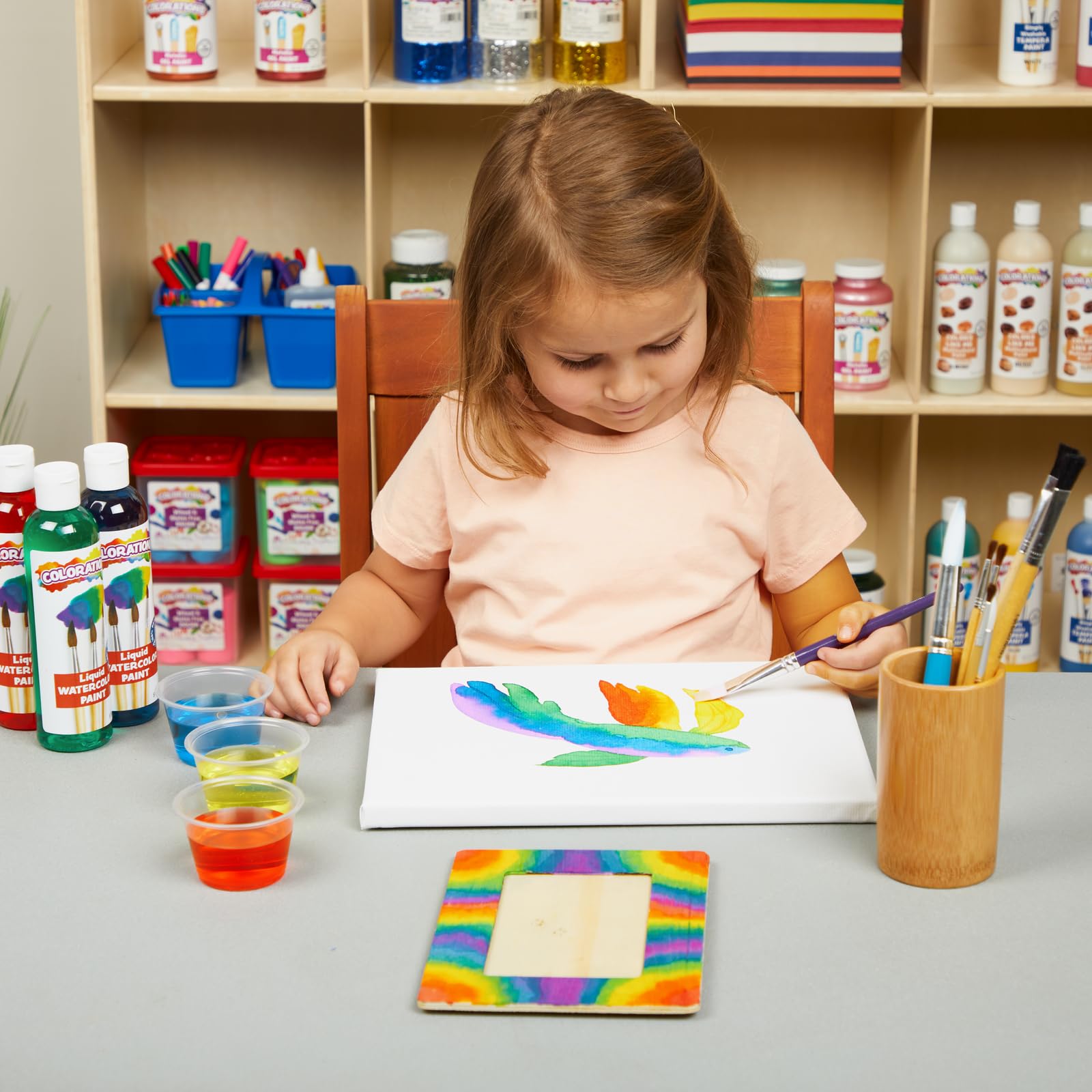 Our most vibrant paint, in a convenient 4 oz. rainbow pack! Longer-lasting and more colorful than traditional watercolors, Liquid Watercolor is the economical choice with so many uses. Plus, Liquid Watercolor is easily washable from skin and most fabrics and surfaces! Set includes 4 oz. each of: red, orange, yellow, green, blue, and violet Convenient 4 oz. bottles are value priced and ideal for small groups Dazzling on paper, wood, fabric, canvas, and diffusing paper Use straight from the bottle for ultimate brilliance, or dilute with water for a traditional watercolor look Mixes beautifully into secondary colors Use with brushes, droppers and bingo bottles for different effects Mists from spray bottles Use to tint glue or dye dough, wood and sensory materials Paint over crayon drawings to create amazing resist art More washable and economical than food coloring for arts & crafts projects Made in the USA by Discount School Supply AP Certified - Discount School Supply Item # LWPACK.