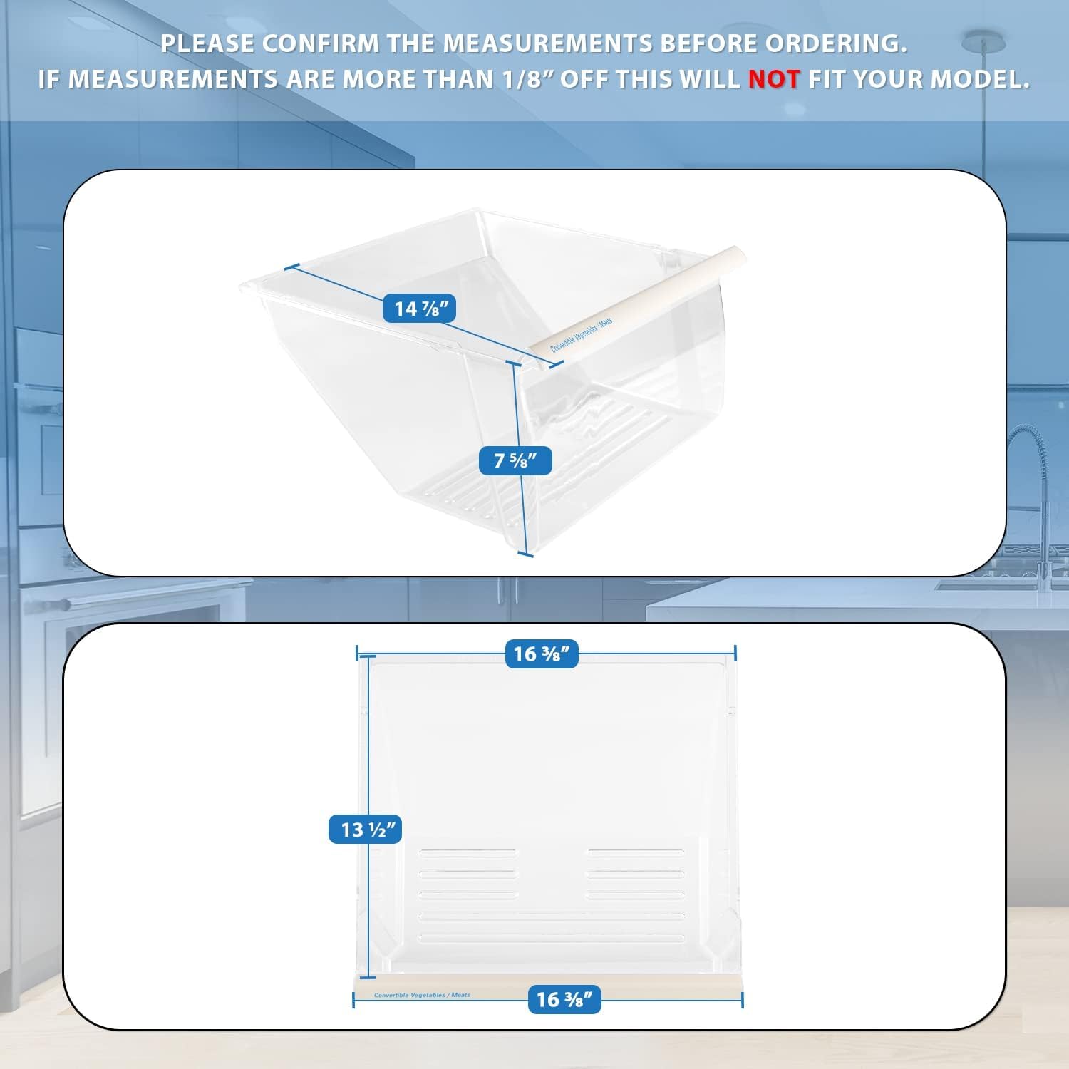 ✅【 WARNING - PLEASE READ 】 This Whirlpool replacement drawer is the LOWER bin of refrigerator ONLY. The upper bin is part number 2188656 instead. If you do not have "Convertible Vegetables / Meats" written on the front, this item will 100% NOT fit your fridge.