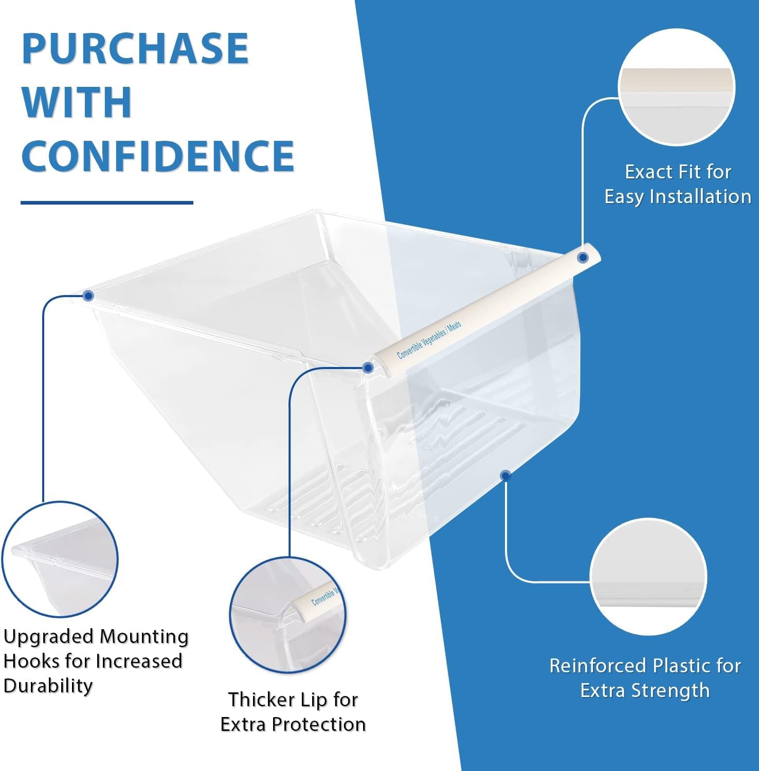 ✅【 PREMIUM QUALITY and WARRANTY 】 This Whirlpool fridge drawer is made with premium, incredibly durable materials guaranteed to last longer and fits perfectly like the original OEM shelf. This product is backed by a full 1-year warranty so you can purchase with confidence.
