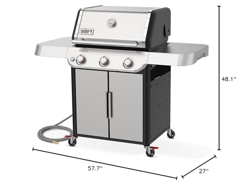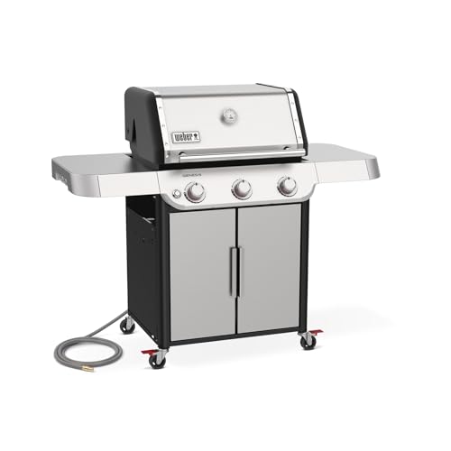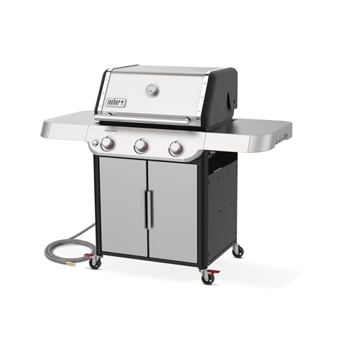 The 3-burner, stainless steel Genesis S-315 natural gas grill delivers legendary Weber quality, performance and durability. It's a grill you can rely on for summer barbecues and to make outdoor cooking for family and friends easy and enjoyable. The PureBlu burner system sets this grill apart from the pack – featuring unique, tapered burner tubes that generate consistent pressure and flames, and deliver even heat across the grilling surface. Flames are directed above the raised gas ports, while food debris falls below minimizing clogging and ensuring the grill lights every time. The generous cooking surface allows you to prepare multiple burgers and steaks simultaneously. You can also extend your outdoor cooking capabilities and explore a variety of techniques with the help of the compatible WEBER CRAFTED Outdoor Kitchen Collection. These cooking grates accommodate frame kit and custom-fit grillware (sold separately), transforming your grill into a pizza cooker, outdoor griddle, and more. This Genesis gas grill is built to last and backed with a warranty, so you can enjoy season after season of delicious outdoor meals and peak grilling performance. This model's fuel type is Natural Gas and only works with natural gas plumbed to the house. Does not work with bottled gas or bulk liquid propane of any type.
