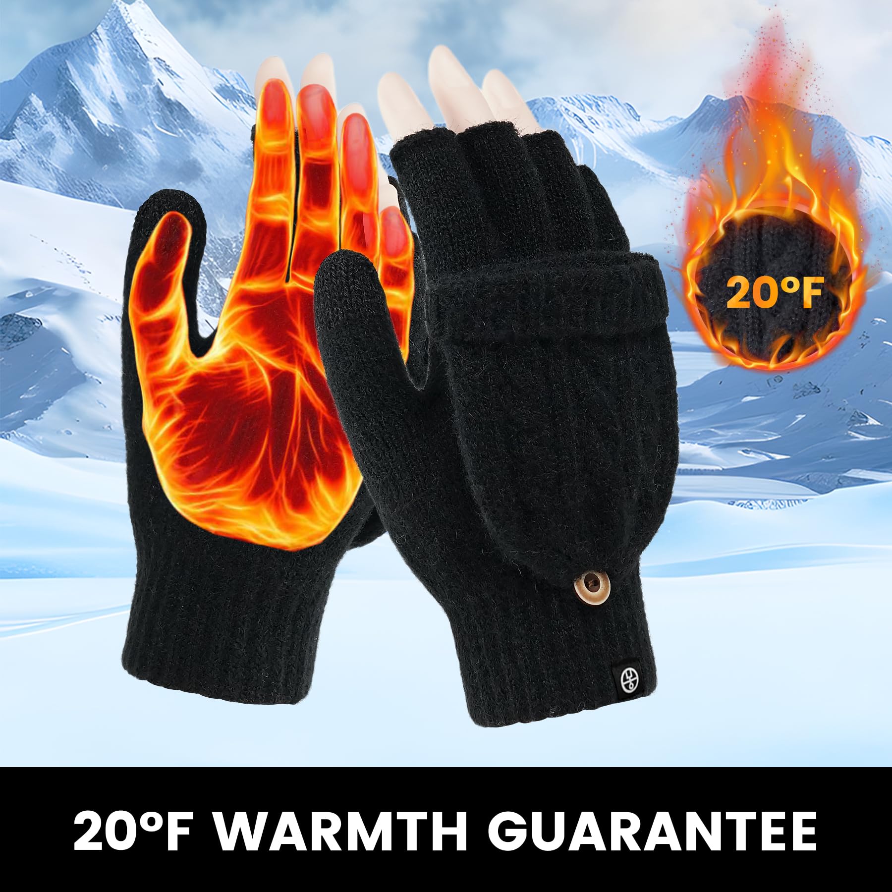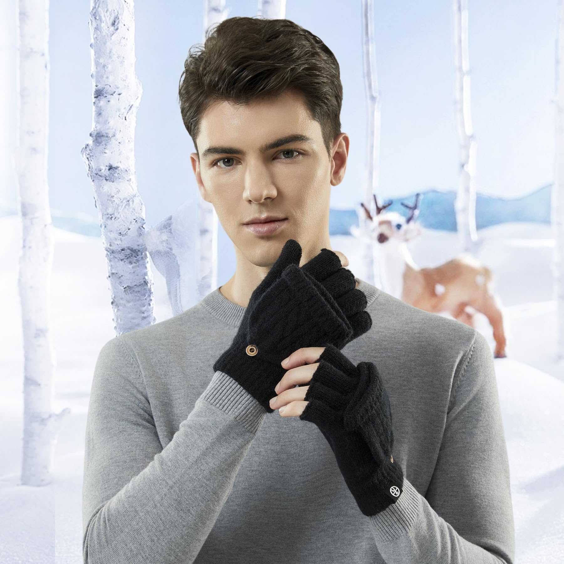 【3D Pattern Design】These thermal fingerless gloves feature 3D classic pattern design, with a sleek, versatile look and perfect hand fit. Designed with 4 separate fingers and a flip-over mitten cover, you can switch freely between full-coverage warmth and finger-exposed operation. The button-secured flip cover balances warmth and functionality, ideal for daily use.