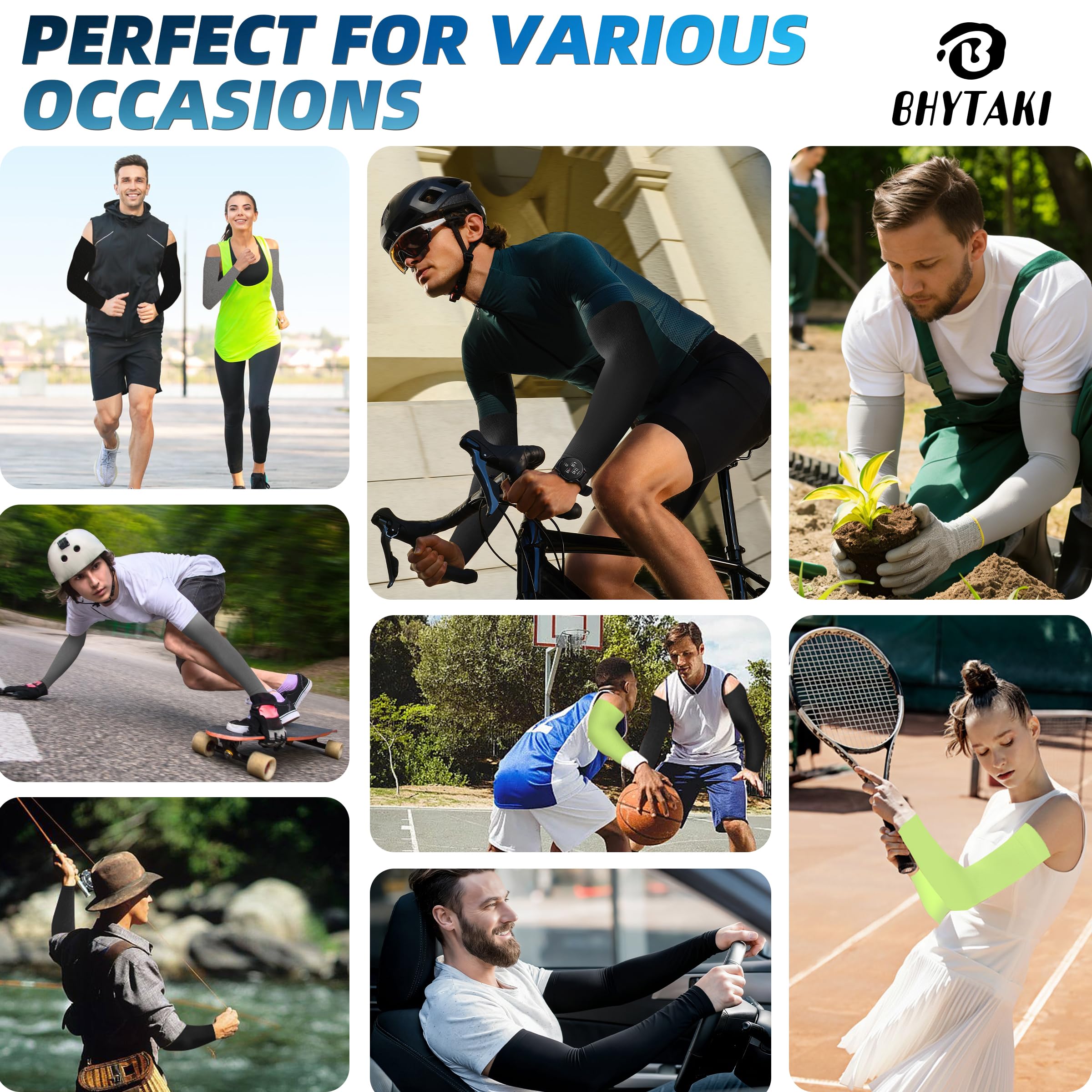 【Large Elastic Fit for Most】We broke the conventional cooling sleeves size and added elastic fibers, the length of the sun sleeves from 16.3 inches to 48 inches, and the width from 4 inches to 9.8 inches, can be stretched to the length you want, with high elasticity, it doesn't feel like it's strangling your arms when you wear it, and arm sleeves are more comfortable to wear. The arm sleeves circle of the upper arm has been designed to be widened to prevent slipping off during wearing.