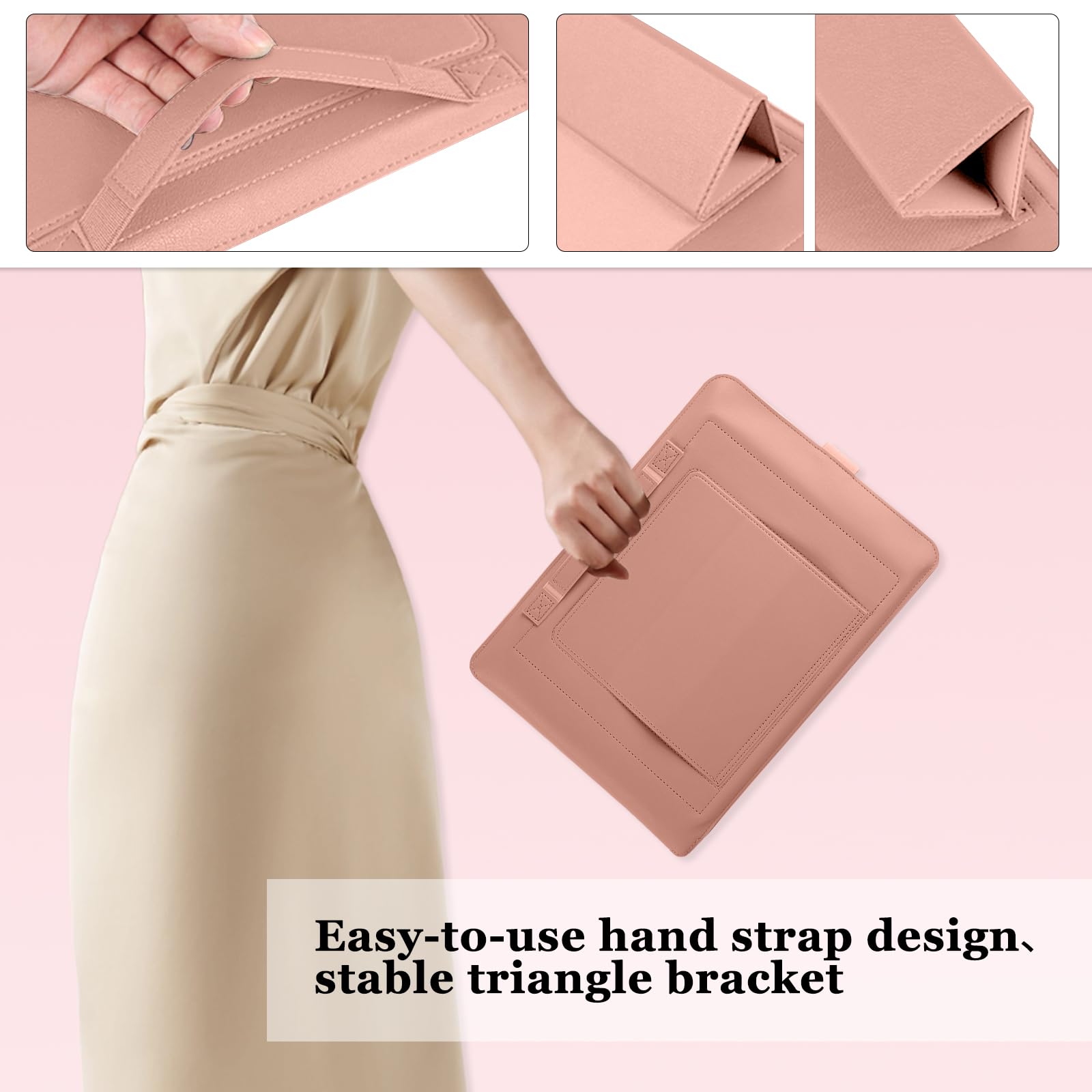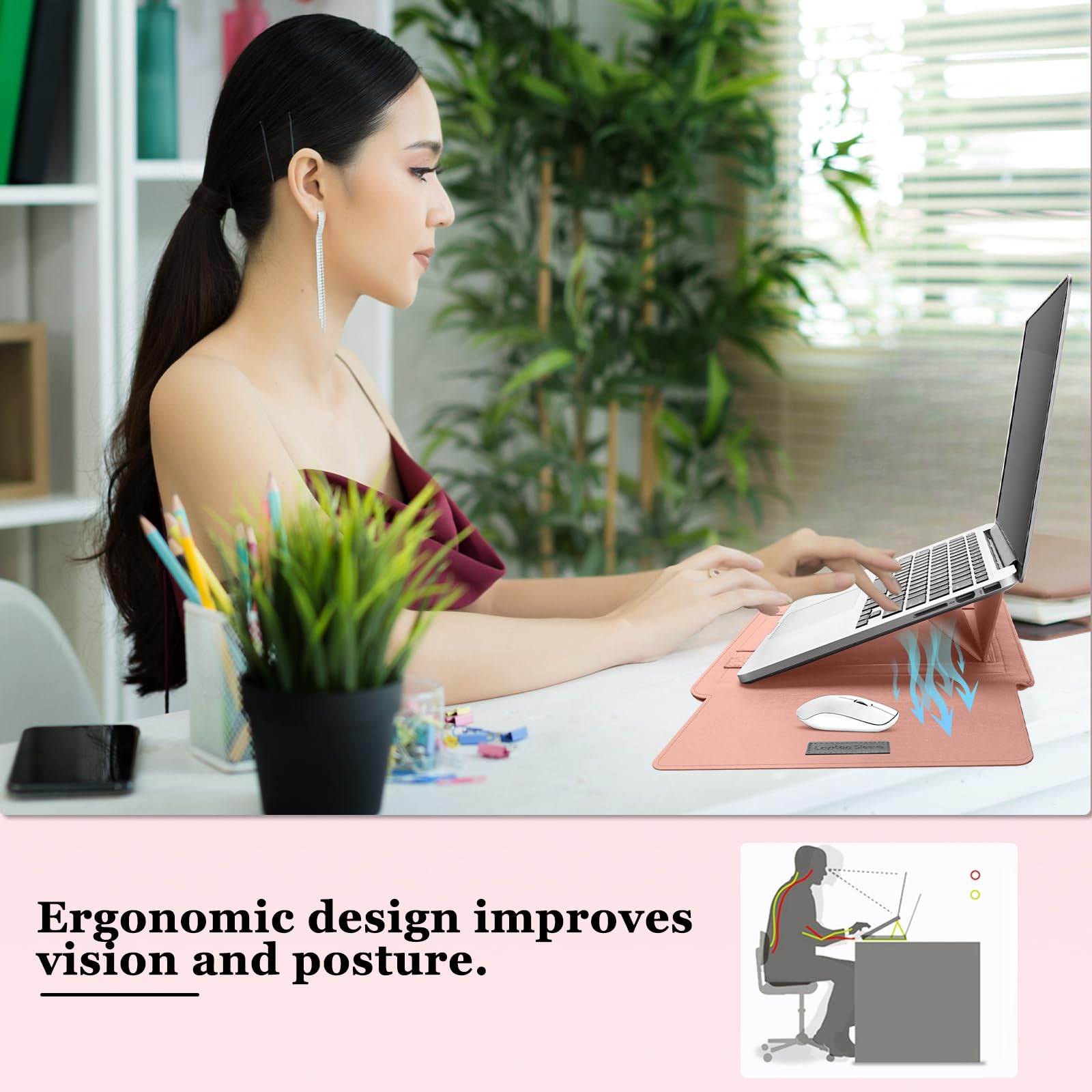 【Innovative 3 in 1 Funtion】This laptop sleeve combines a laptop stand, laptop protective, and mouse pad in one. The flap doubles as a mouse pad, and the stand features a foldable design. Compact, lightweight, and stylish, it's perfect for travel or office use.