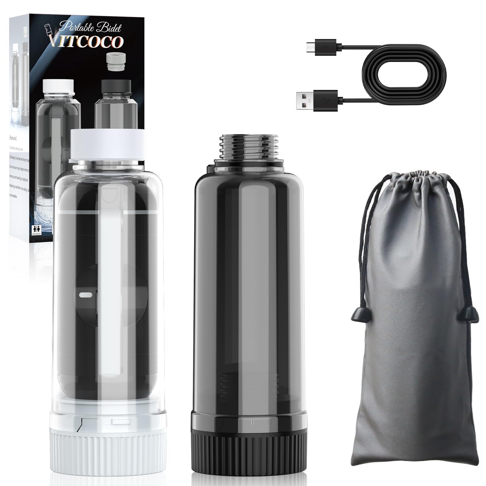INCLUDING: Portable bidet;2 water bottles, one of which is translucent black for concealment; towel; storage bag; storage pouch; USB charging cable; instruction manual.