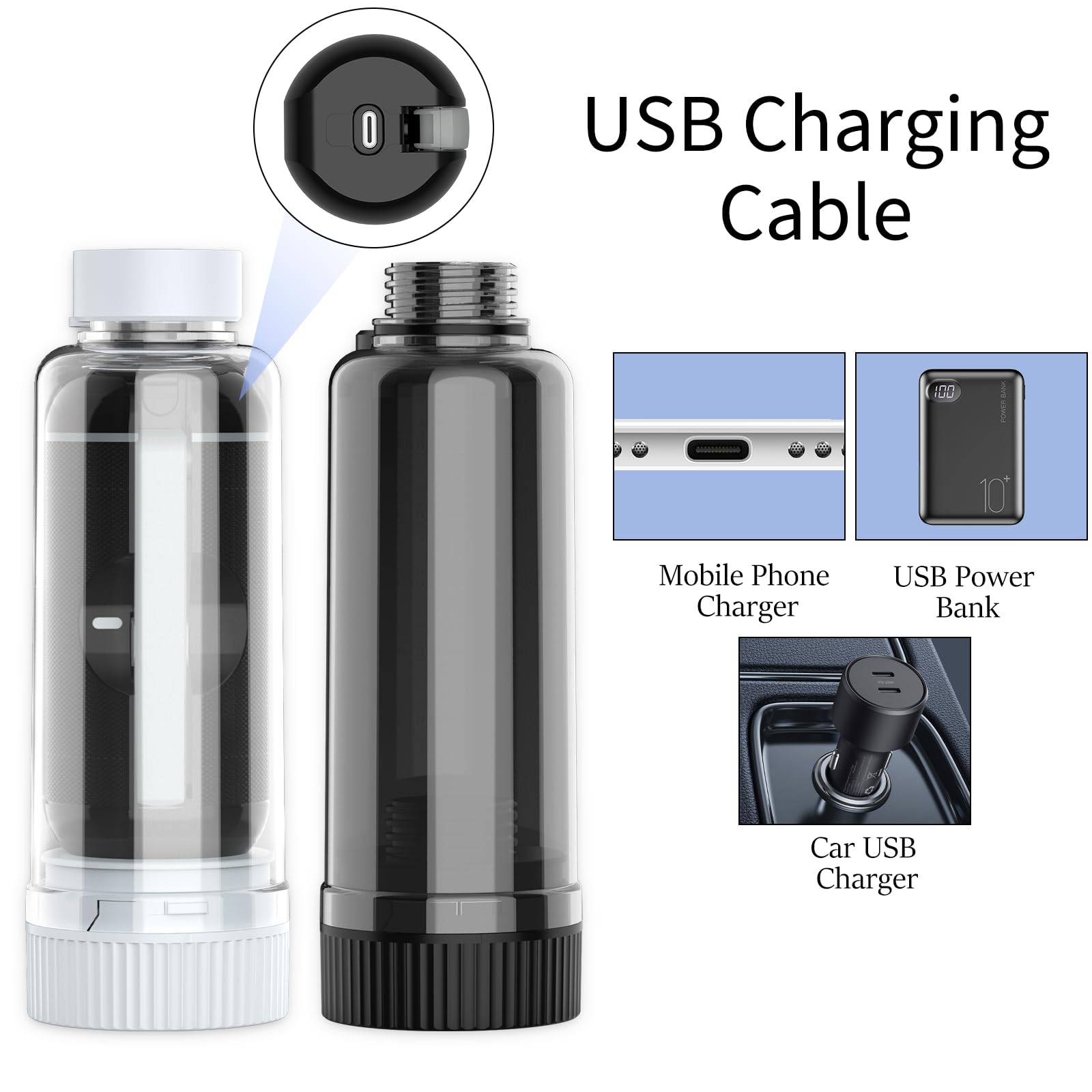RECHARGEABLE and 2x 200ML WATER BOTTLES: The portable electric travel toilet is rechargeable via USB and lasts up to 1.5 hours on a single charge for up to 60 uses, ensuring that your portable toilet is always charged, and 2x 200ML water bottles are more than enough for portability.