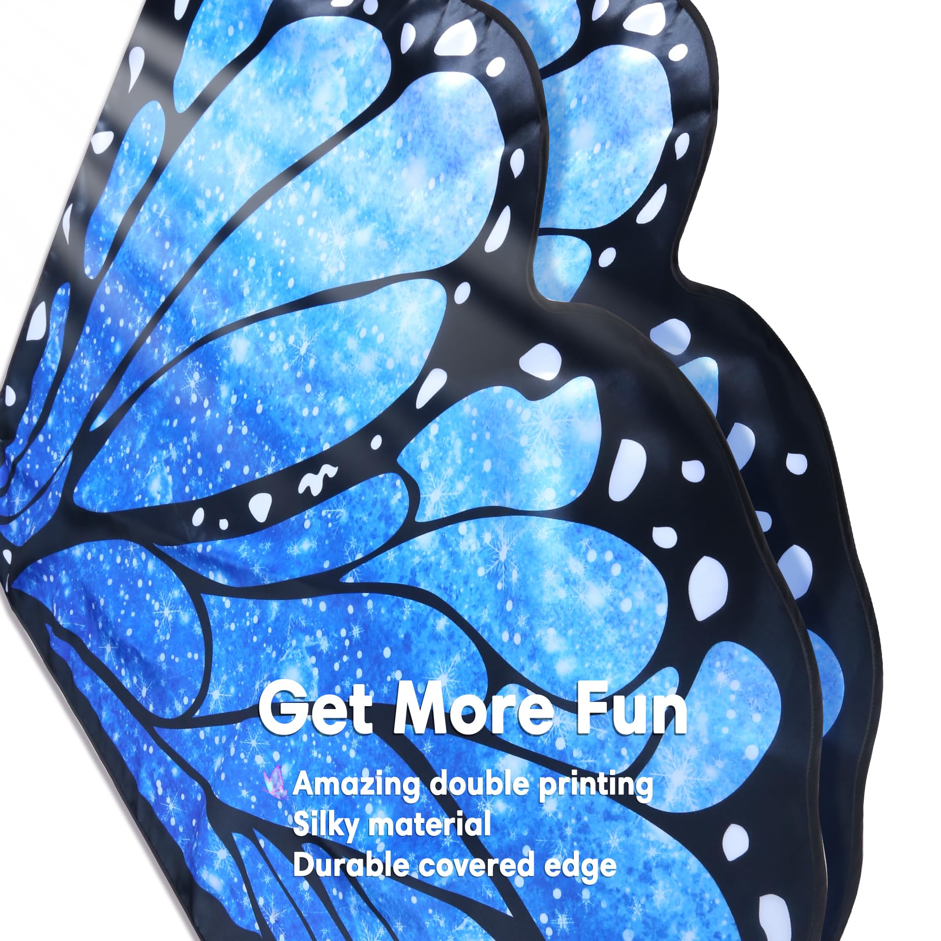 Double-Layer Fabric & Double-Sided Printing: Crafted from high-quality, double-layer polyester, our butterfly fairy costume for girls are both soft and comfortable. The double-sided printing offers a remarkable visual effect. Perfect for cosplay costume parties or themed photoshoots, the vibrant colors of our shawl guarantee you'll stand out in any crowd and lighting