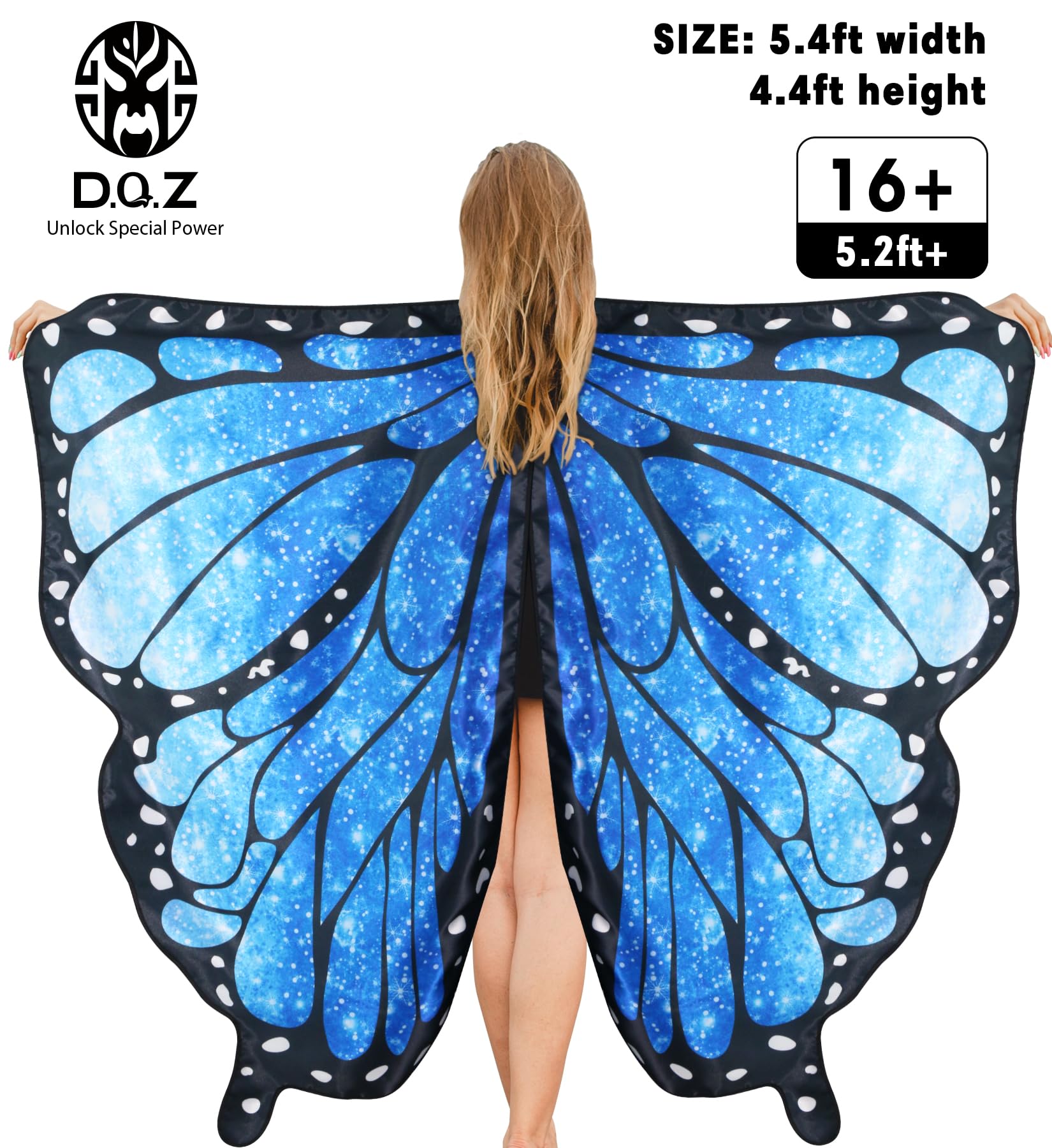 D.Q.Z Double Sided Women Butterfly Wings Costumes for Adults Fairy Festival Dress Up with Headband Halloween Party (Sky Blue)