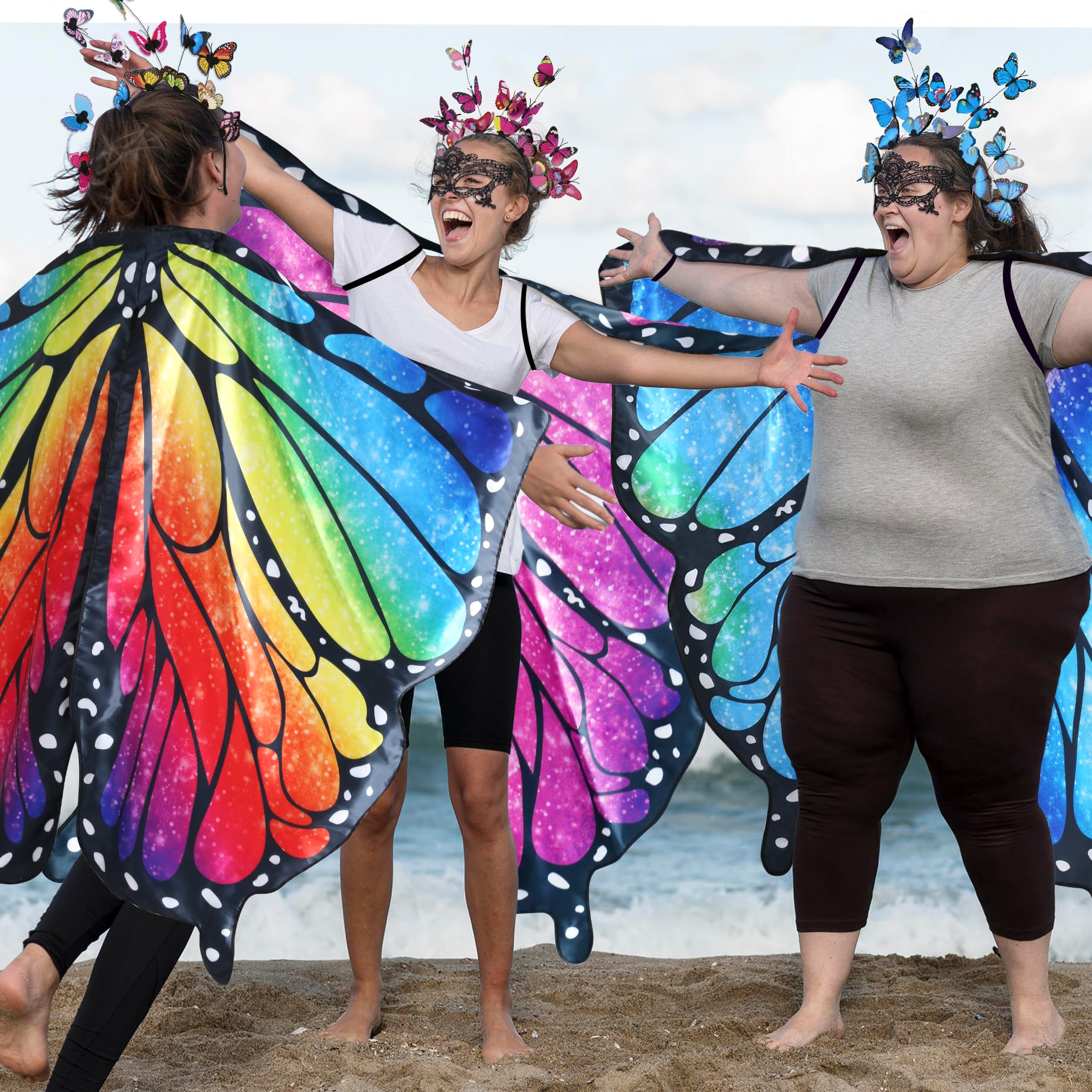 Extremely Play Pleasure: Ideal for halloween costumes, Monarch butterfly festival, the day of the dead, Easter, Christmas, birthdays, costume balls, music festivals, carnivals, dance wings performances, parades or butterfly-themed parties, this butterfly dress up wings shawl and headband set is a delightful surprise for your partner, family, friends, and colleagues
