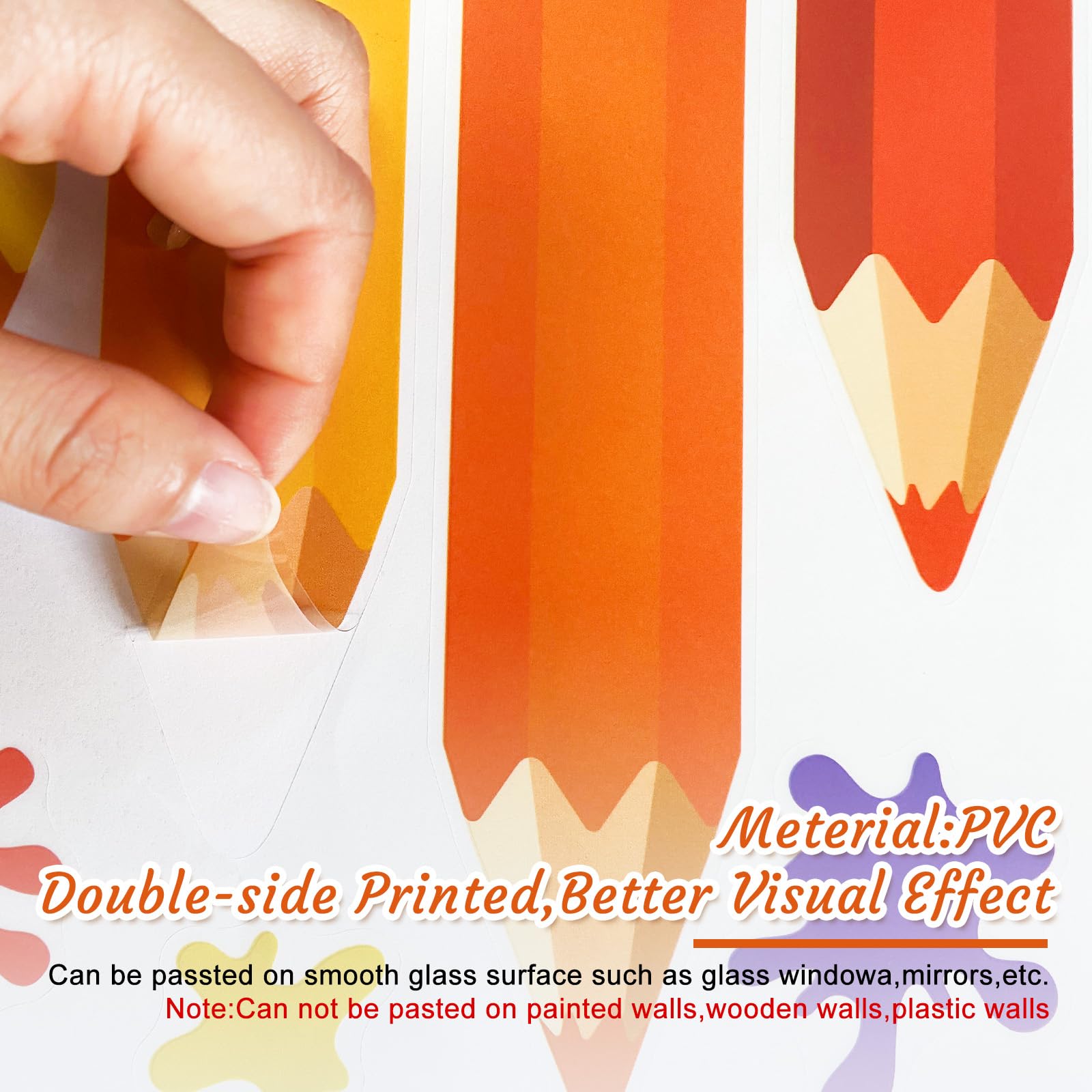 Unique designs: 9 sheets of back to school decals for windows are designed with different patterns and colors, each sheet measures 25 x 35cm / 9.8 x 13.8inch, printed with pencils, you can freely combine to make your decoration look richer and more wonderful, to create a happy atmosphere.