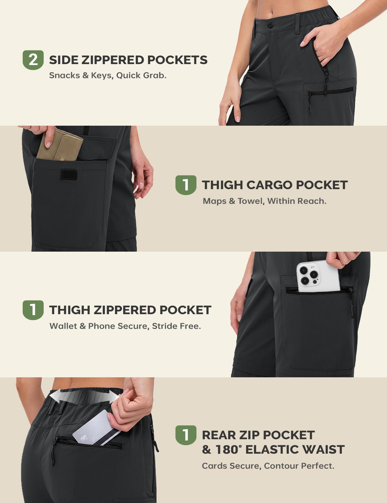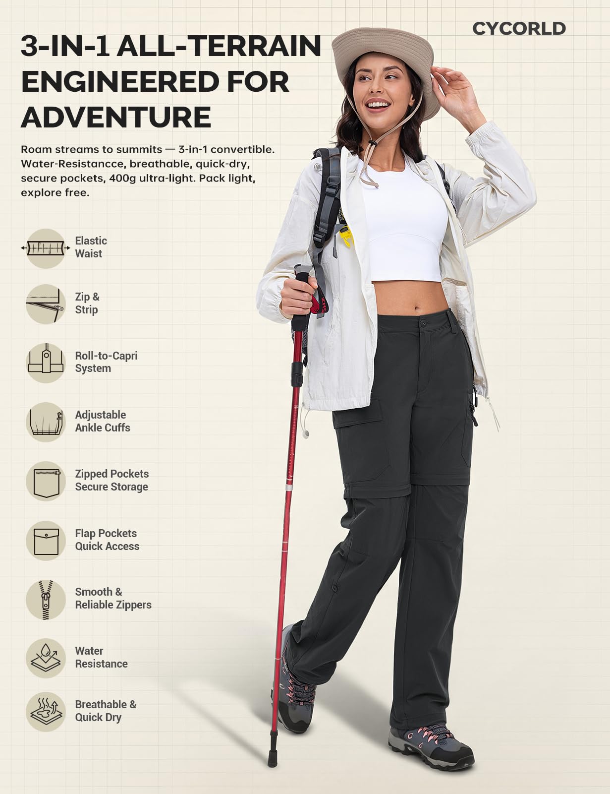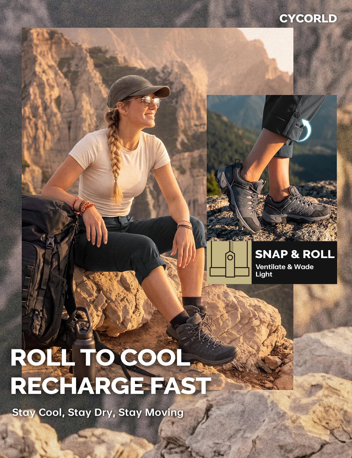 Gets iconic by Stylish design, Cycorld hiking pants for women have 3 ways to wear,offering convenient and relaxed style.