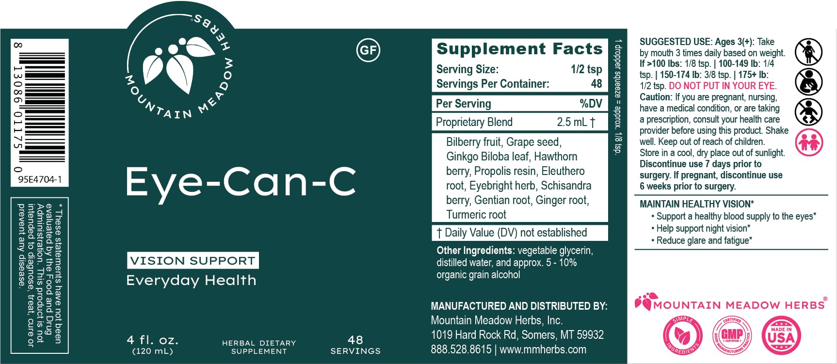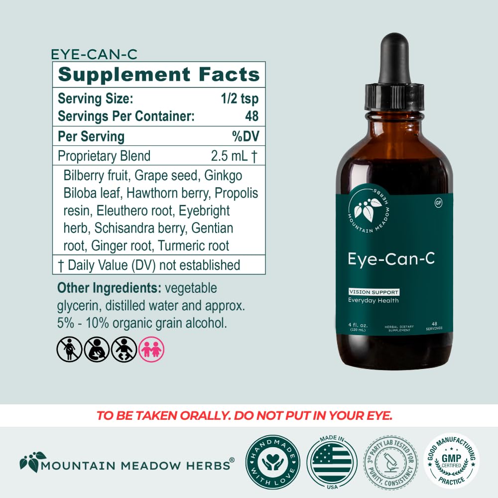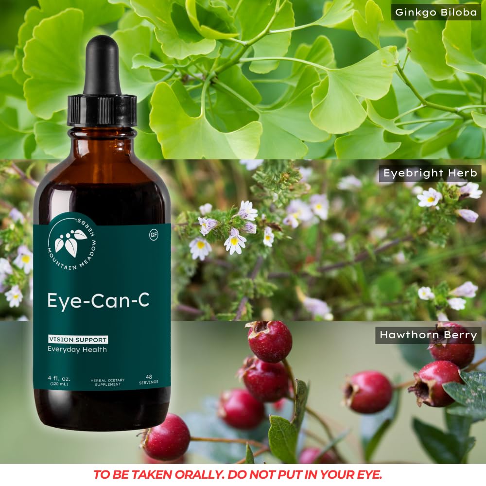 Herbal Eye Health Support: Eye-Can-C is a natural liquid supplement crafted with a synergistic blend of time-tested herbs like Bilberry, Ginkgo Biloba, Eyebright, and Turmeric, designed to promote long-term eye wellness, visual clarity, and overall eye function. This powerful formula nourishes the eyes from within, improves circulation to support clearer vision, reduces oxidative stress, and helps protect against daily visual strain, including sensitivity to light, glare, and eye fatigue caused by aging or prolonged screen use.