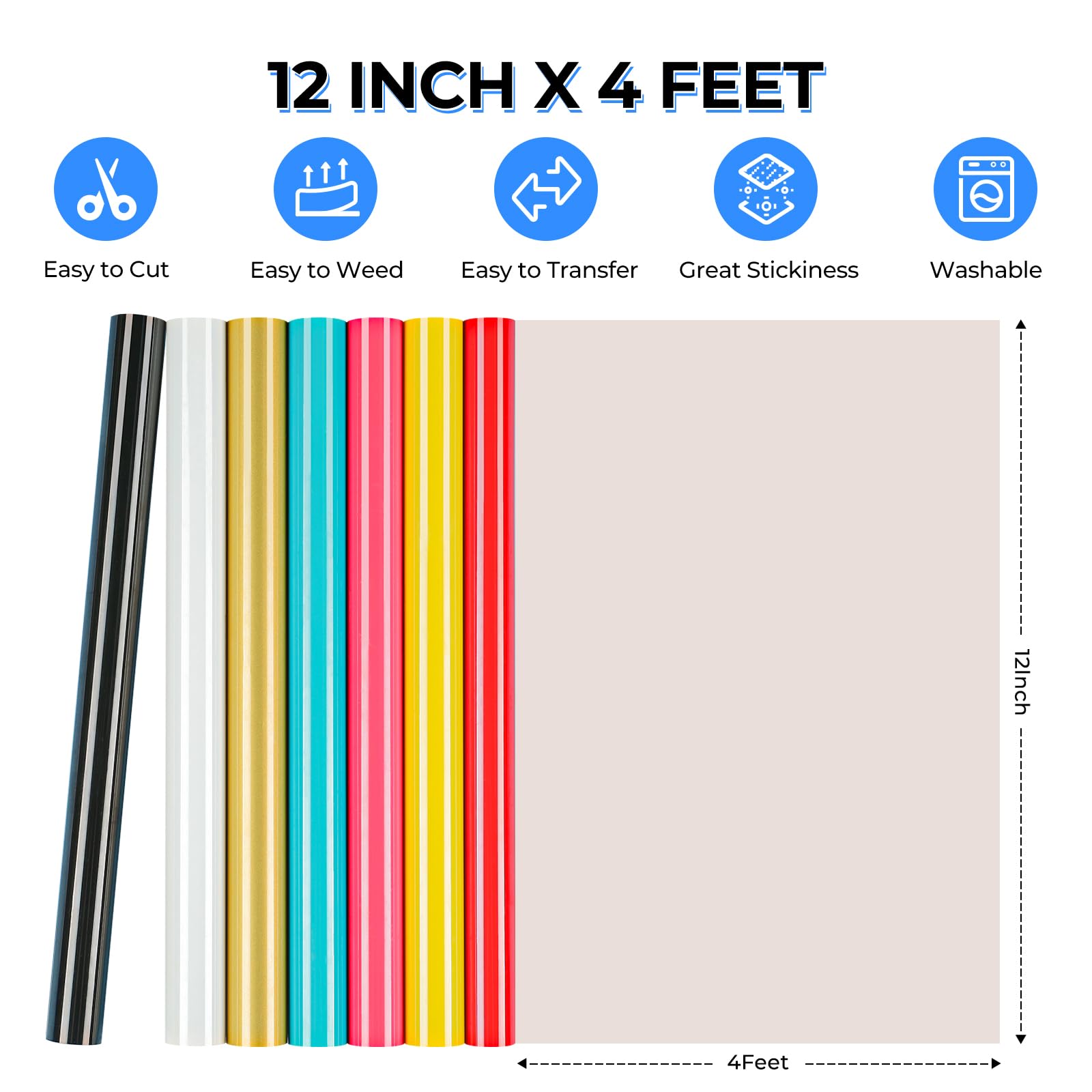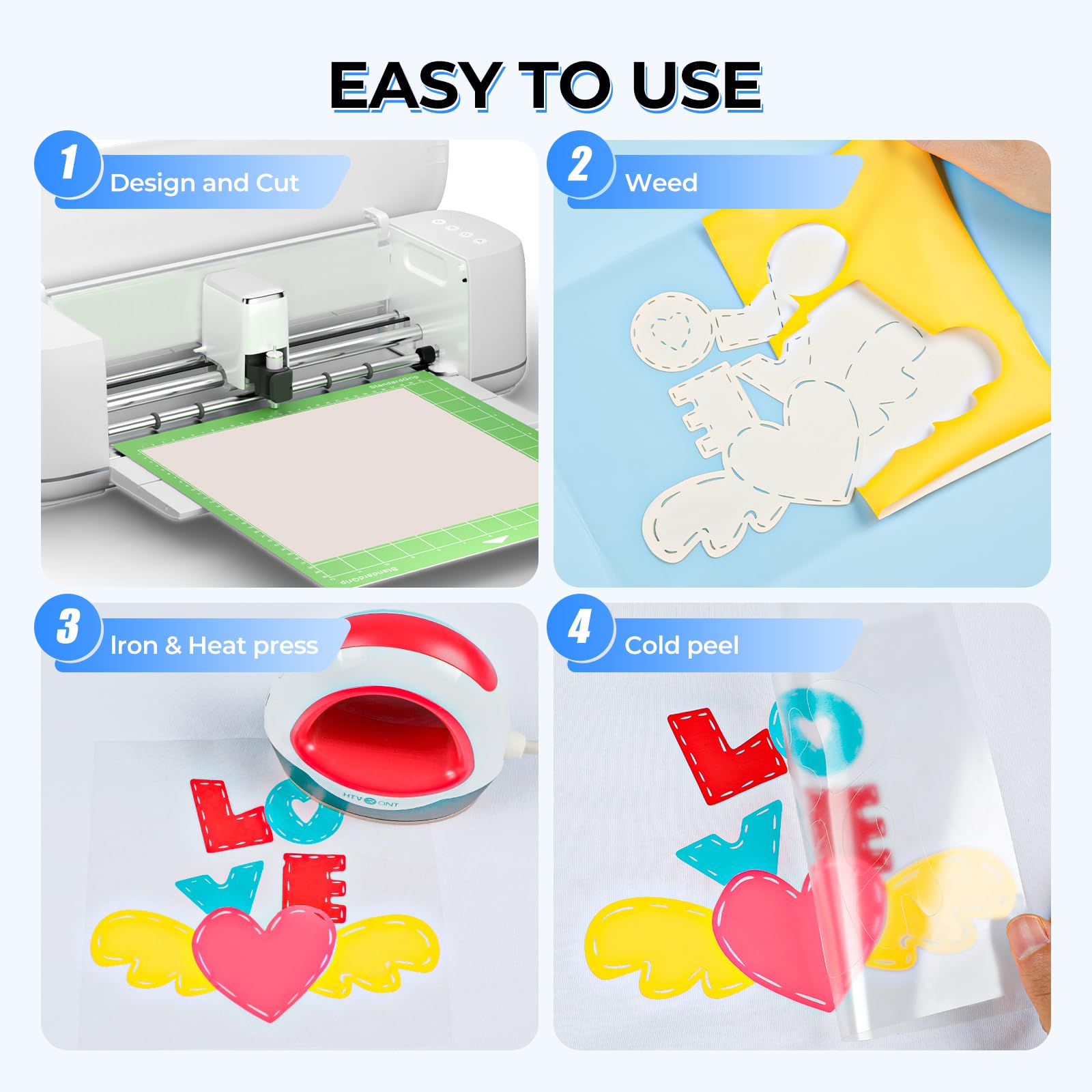 【SAFE & SKIN-FRIENDLY】The perfect size of our yellow htv is 12" x 4ft which is suitable for beginners and creators. Our yellow heat transfer vinyl is made of soft PU material, which is lighter and thinner. The htv fits clothes more closely, and does not deform when pulling. SGS certified material, friendly and safe to wear. Just make sure childs have adult supervision when it’s time to iron the designs