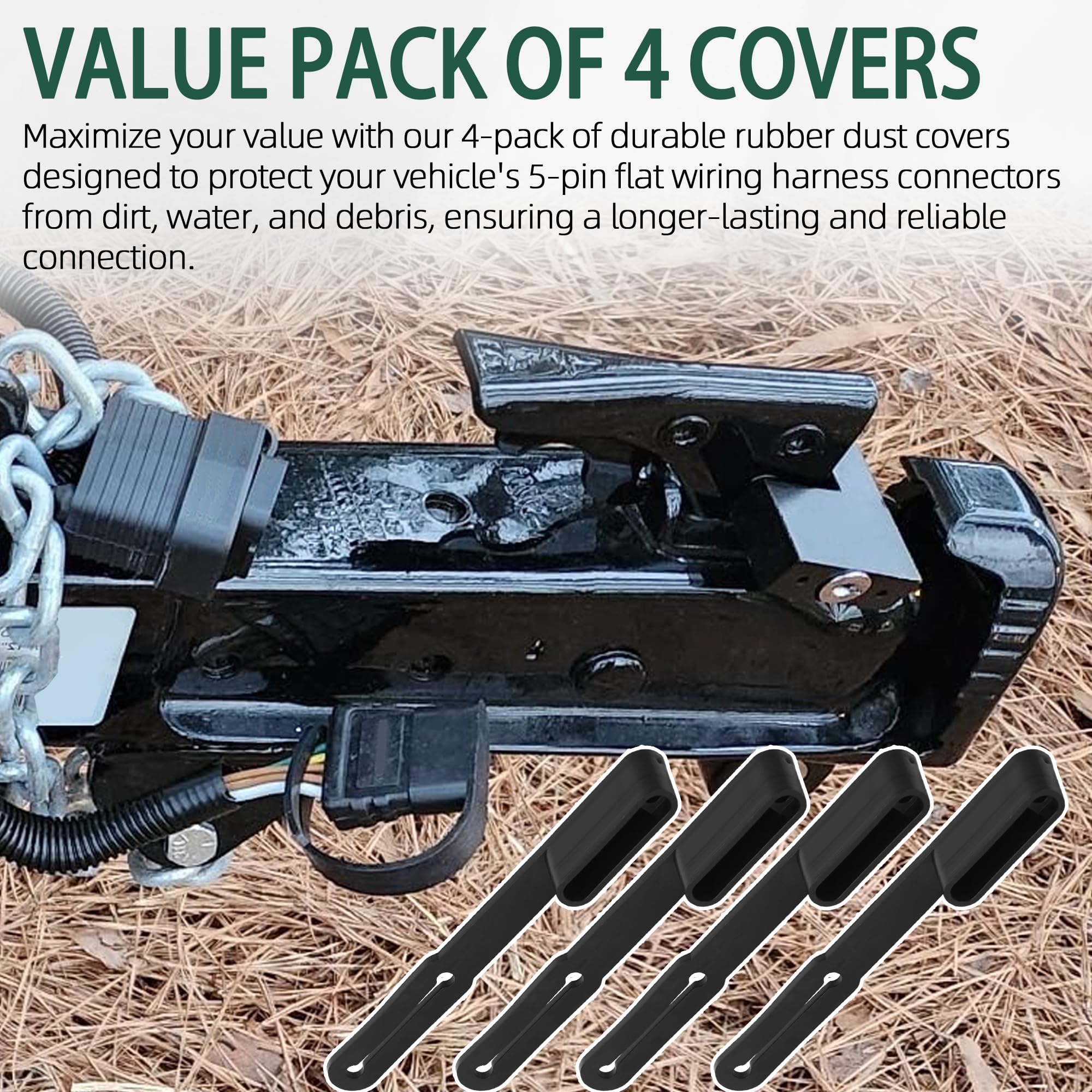 Value Pack of 4 Covers: Get the most bang for your buck with our durable rubber dust covers! They’re designed to protect your vehicle's 5-pin flat wiring harness connectors from dirt, water, and debris, helping to keep your connections reliable and long-lasting