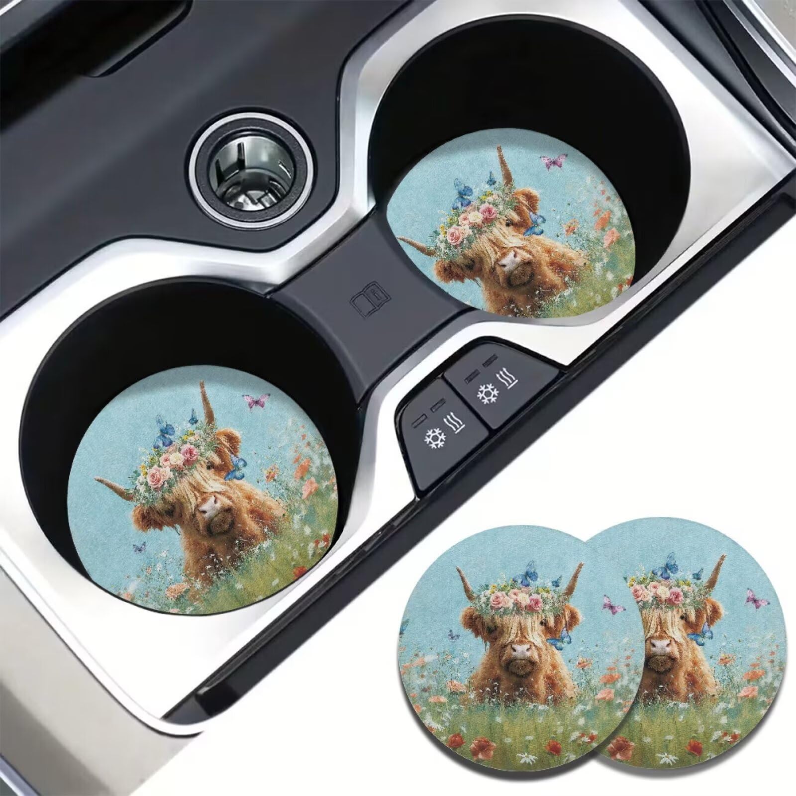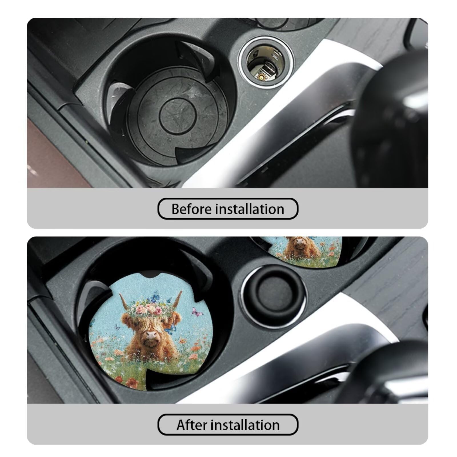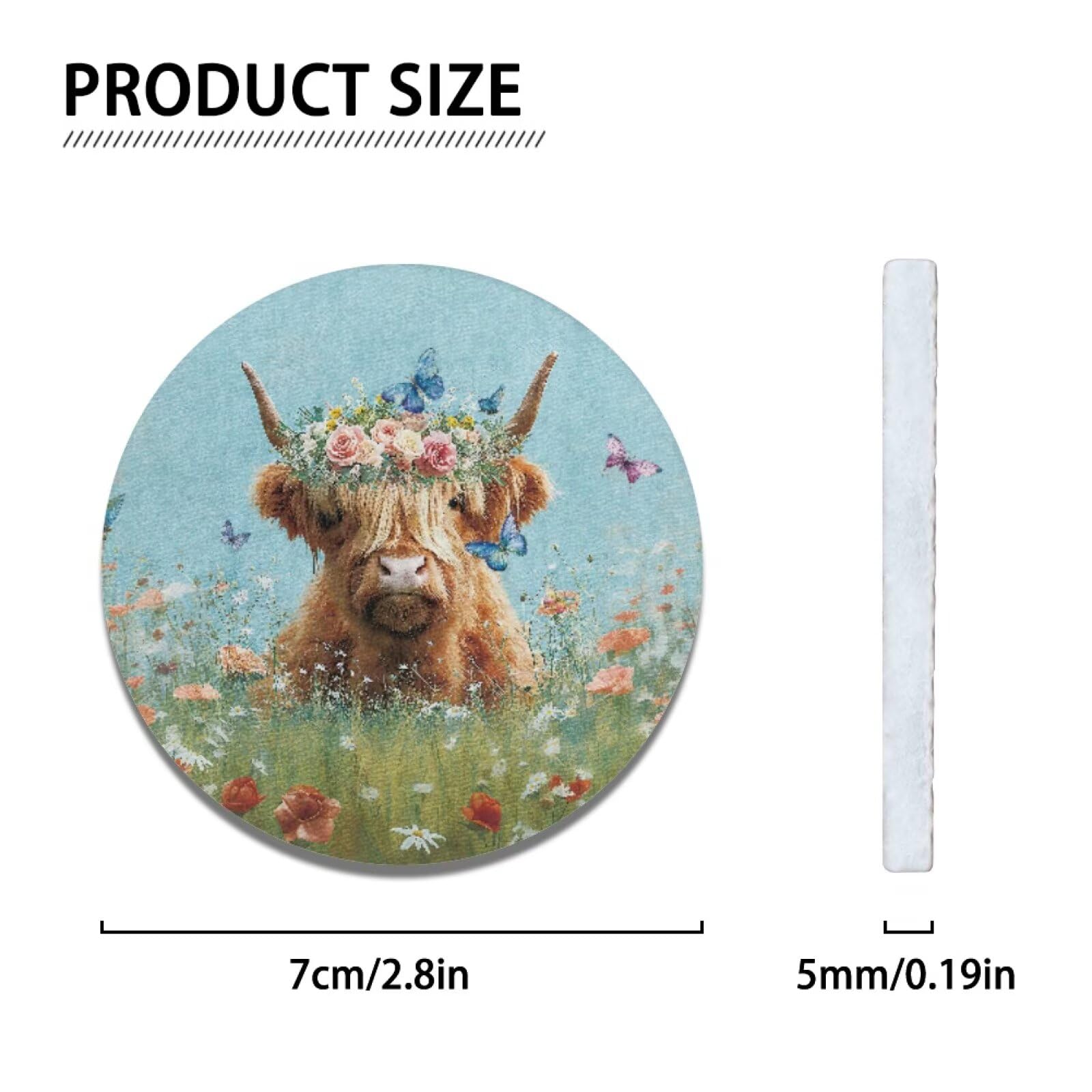 ◆Package - 2 car coasters included, diameter is 2.8 ", thickness is 2mm and standard size designed to fit cup holders in most cars, vans, SUVs and trucks, or dining table and bar.