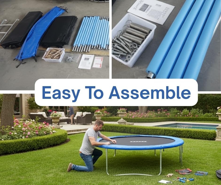 TOOL-FREE ASSEMBLY – Quick setup design requires no tools; trampoline can be ready in minutes