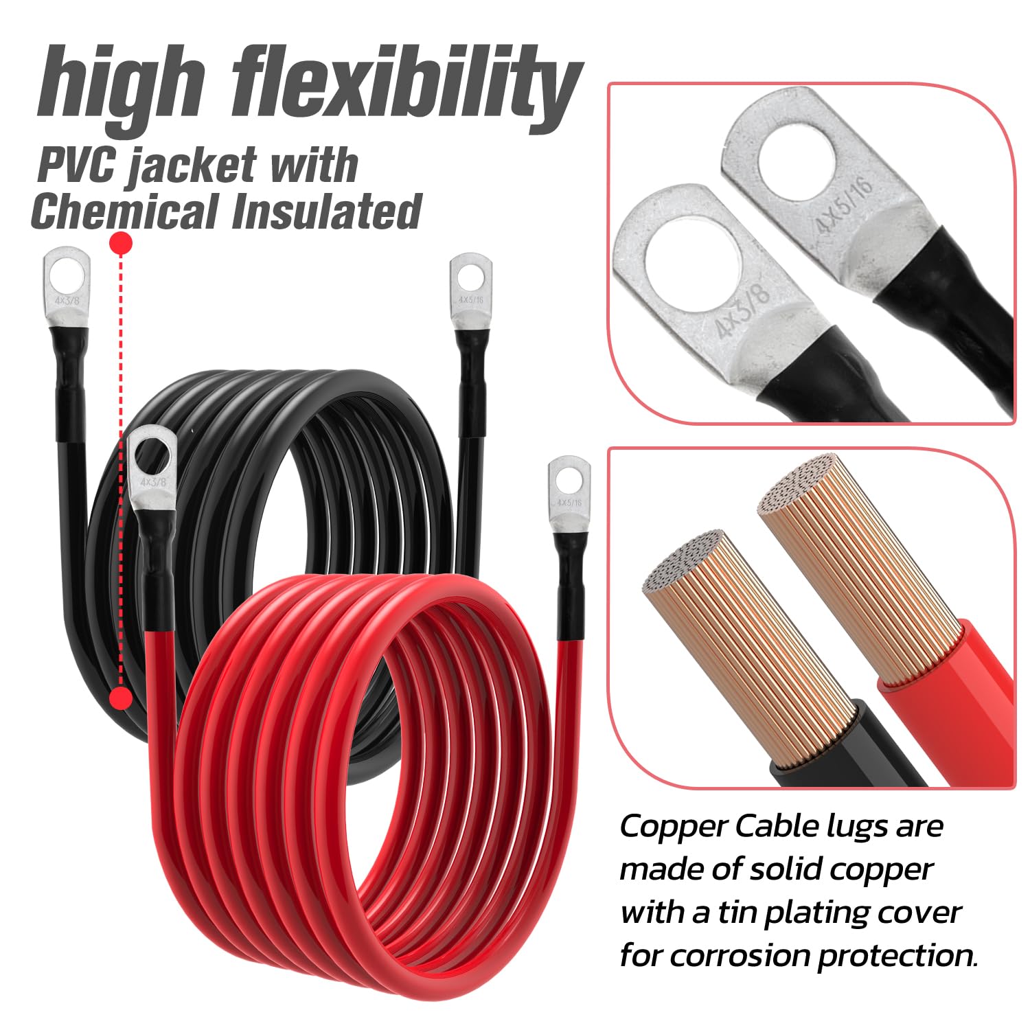 Wire Gauge: 5 AWG; Length: 10FT; Terminal lugs: 3/8"+5/16"