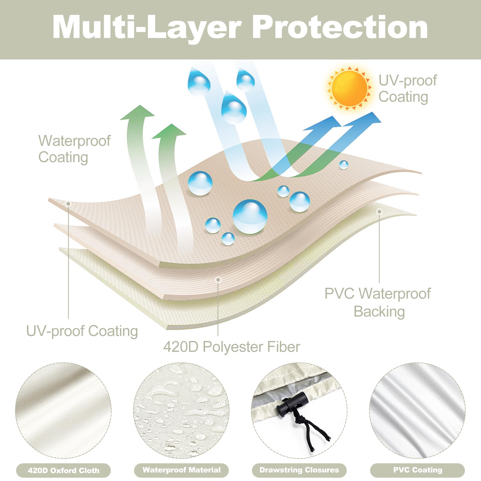 【Premium Quality】With an extra UV coating,the outdoor furniture covers is made of 210D oxford fabric materal. And this patio chair covers just only needed to wipe with a damp cloth and the dirt will disappear quickly.