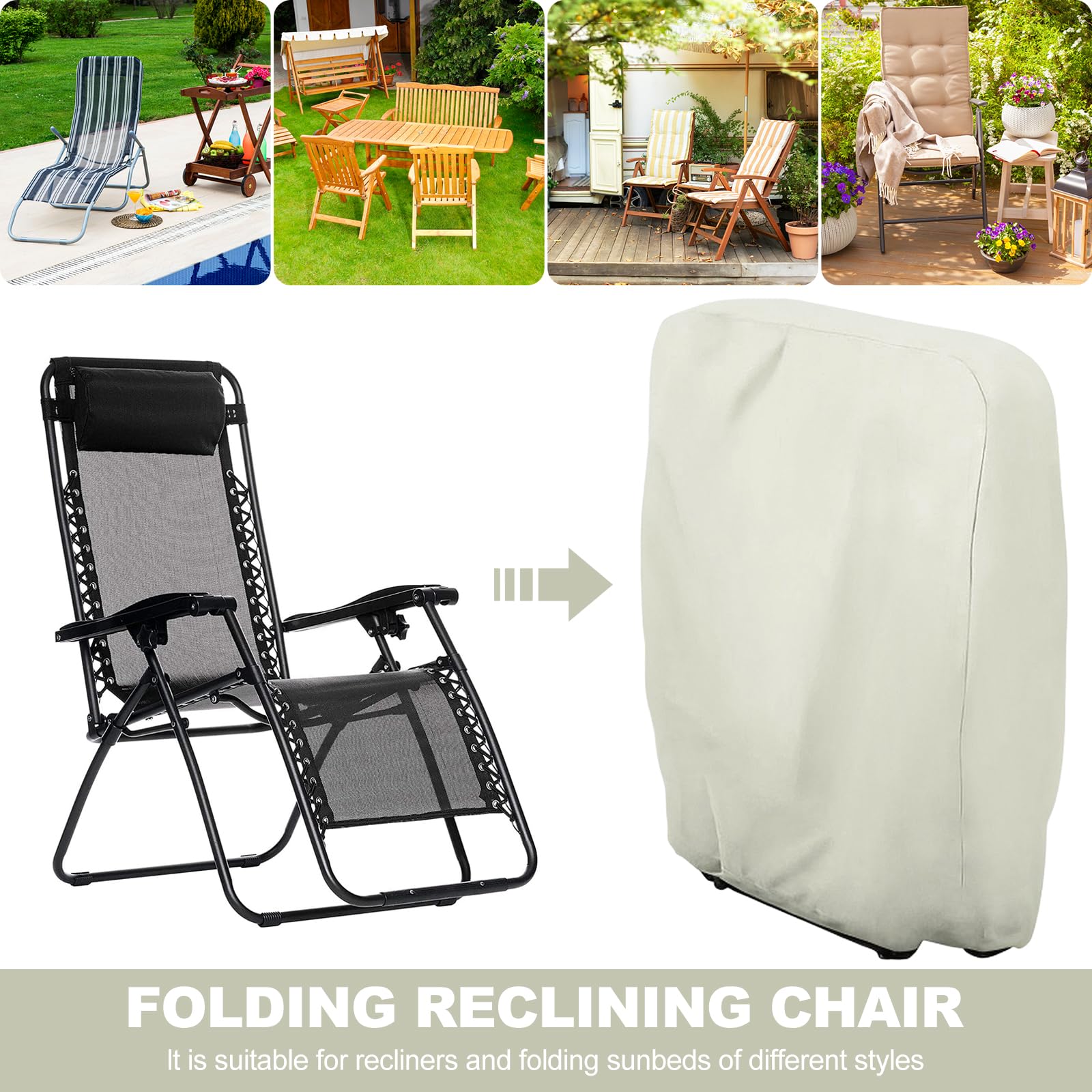 【Universal Size】This zero gravity chair covers owns an unfolded size of 28"W x 13"D x 43"H, which will protect your folding chair from rain, snow, frost, dust etc. Please check that your furniture and equipment are the right sizes before you purchase.