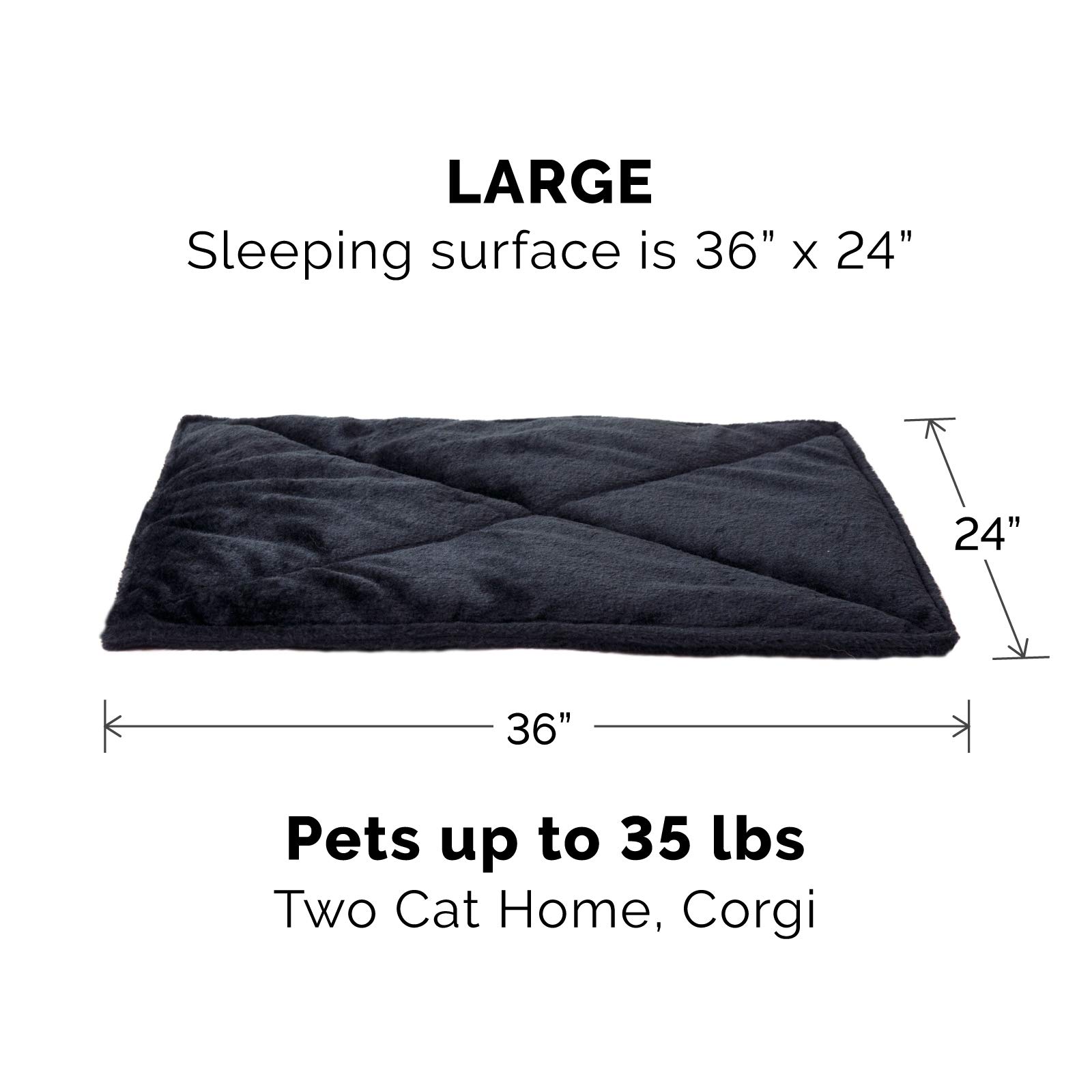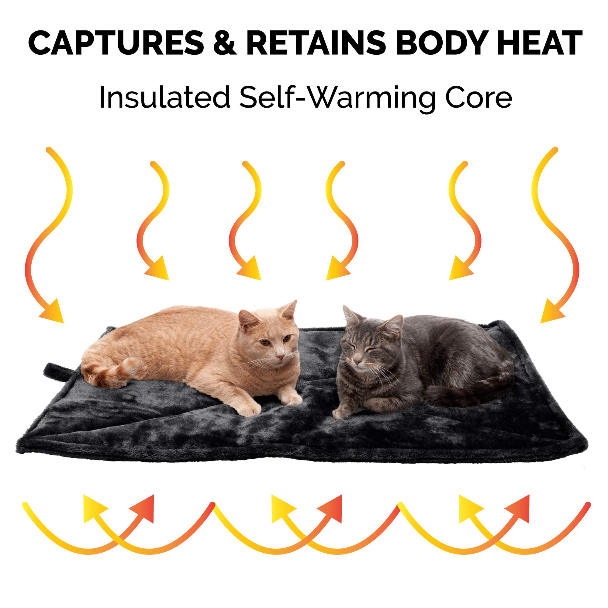 DESIGNED FOR PETS: A safe, electricity-free solution to keeping pets warm and toasty; the bed mat is equipped with a layer of insulating fiber batting and mylar, which reflects body heat to create a warm sleep surface for pets to curl up in cozy comfort