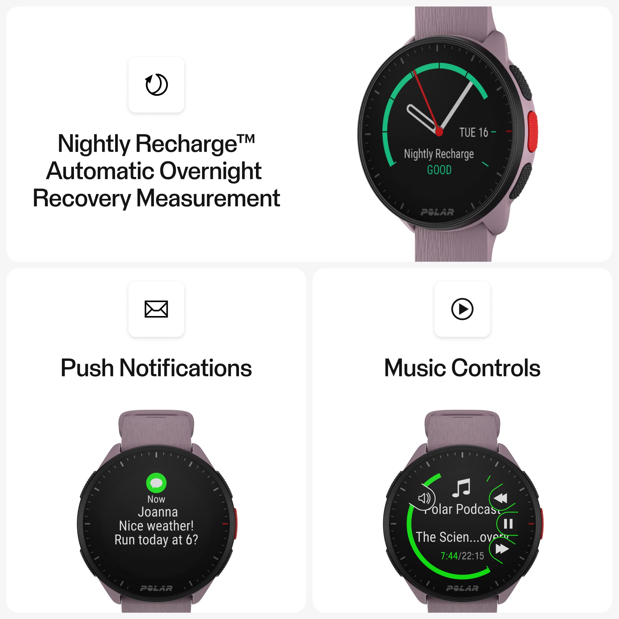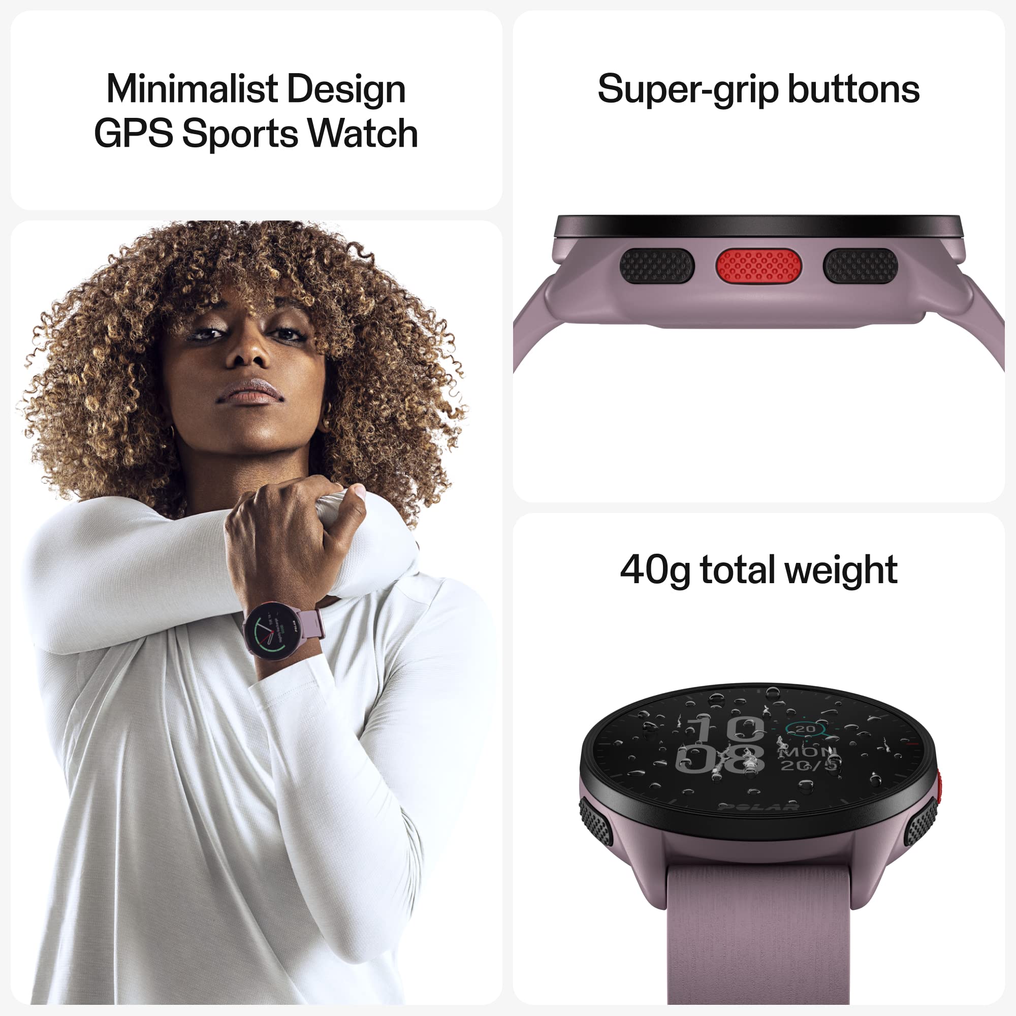The Polar Pacer Ultra-Light GPS Fitness Tracker Smartwatch is the perfect smartwatch for runners serious about improving their performance with tracking for time, place, distance, and laps. on a crystal clear, always-on, MIP color display. With up to 35 hours of battery life on a single charge while training mode (up to 100 hours in power save mode) this lightweight, 40g, watch is perfect for men and women in sizes small, medium, and large and comes in a variety of colorful straps. Features include heart rate monitoring, specialized training and recovery tools that provide personalized guidance and feedback with short-term and long-term monitoring of stress and cardio load. You can even plan and track your fitness using the Polar Flow App, included with purchase available on Google Play (https://play.google.com/store/apps/details?id=fi.polar.polarflow&hl=en_US&gl=US) and App Store (https://apps.apple.com/us/app/polar-flow/id717172678). With an enhanced processor powering faster performance and screen transition and a GPS that tracks every step and turn, the Polar Pacer Smartwatch is the ideal running partner for professional athletes and everyday runners alike.