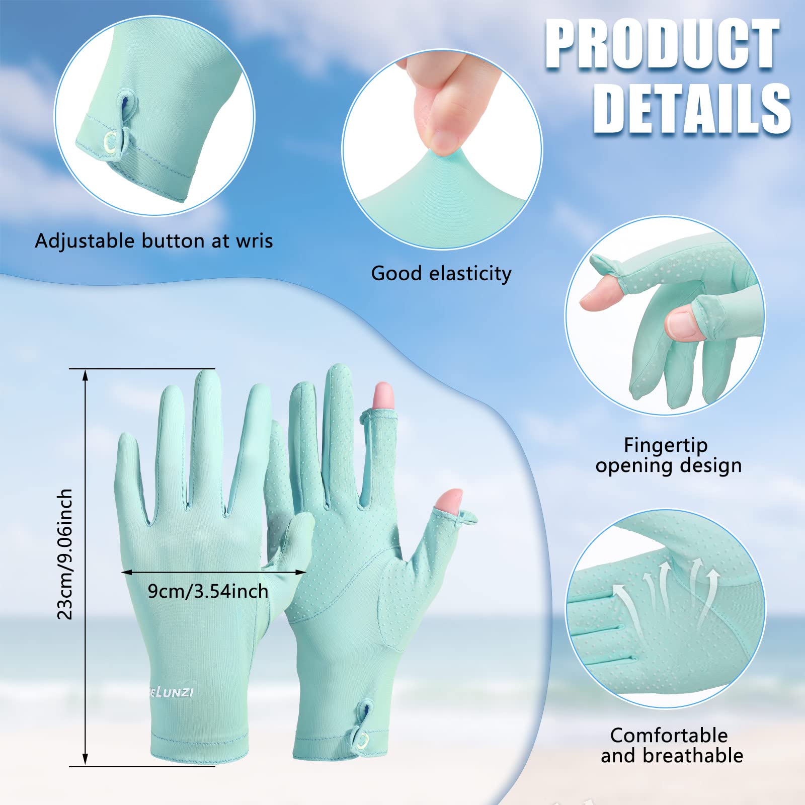 Appropriate Sizes: each sun protection glove measures about 23 cm/ 9 inches in length, 9 cm/ 3.5 inches in width, and 18.5 cm/ 7.3 inches in wrist circumstance, suitable for most people to wear, and will not bring you tightness