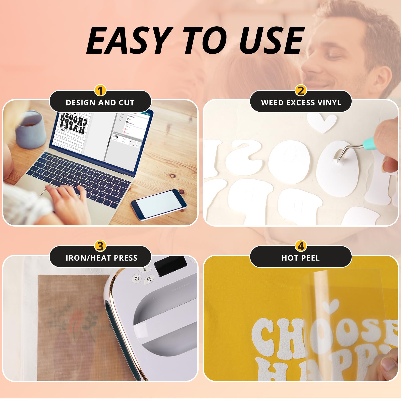 ✂️Easy to Cut & Weed & Transfer✂️ Our puff htv vinyl is very easy to cut out the desired pattern and perfectly remove the excess parts, you can easily transfer your favorite patterns to T-shirts. Also, this puff vinyl is compatible with all types of die-cut machines and heat press machines.