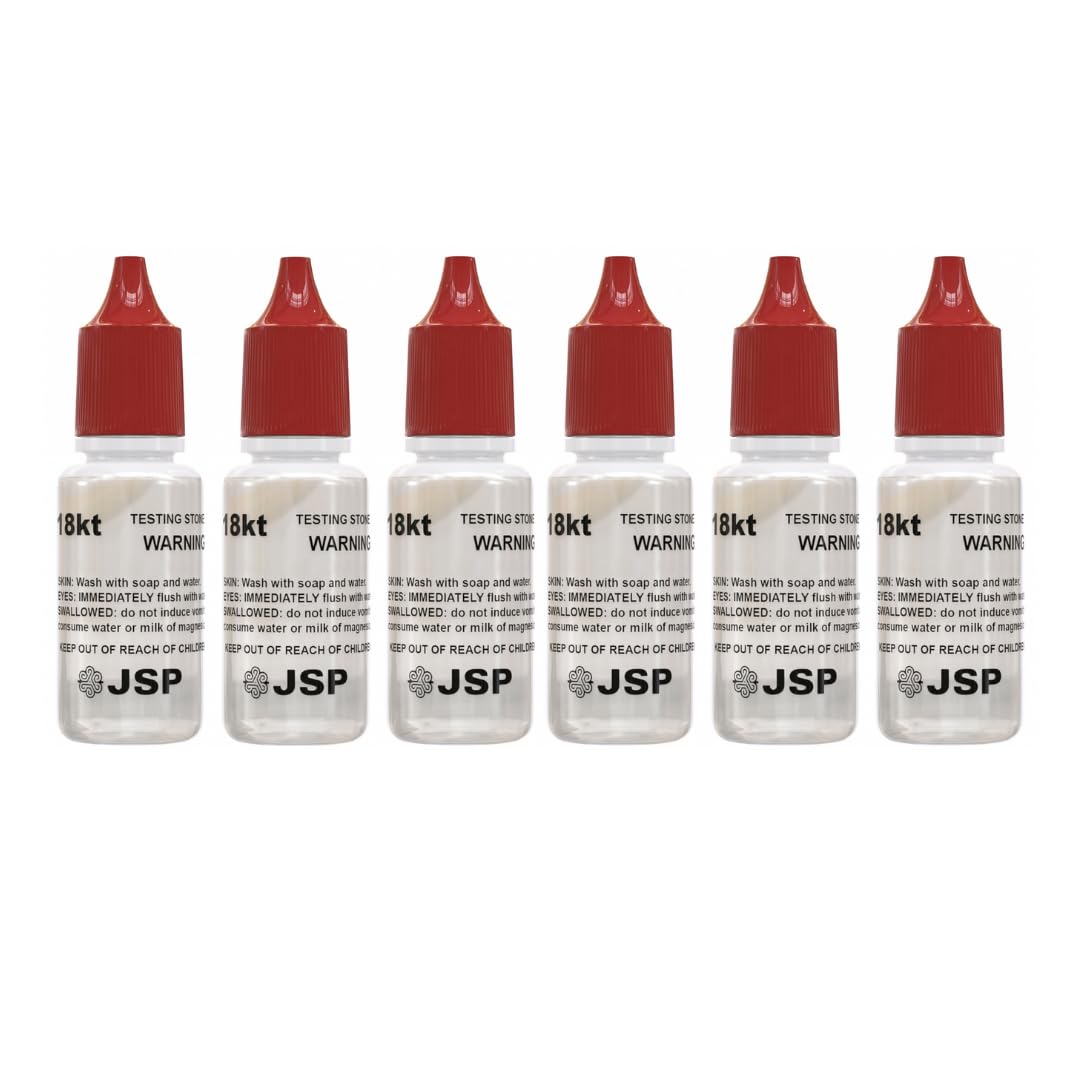 This EASY to use genuine JSP Gold Jewelry test kit will determine the karat value and purity of Gold Jewelry, scrap, bars, coins, and much more! Simply scratch the test stone with your jewelry, apply a drop of the solution to the scratch mark on the stone, and watch the results appear! This testing kit is FUN, FAST, and ACCURATE! This 4 piece kit includes - 3 Bottles of JSP 22K Gold Testing Solution 0.5 oz. (14 g) - Easy to read and follow instruction booklet!