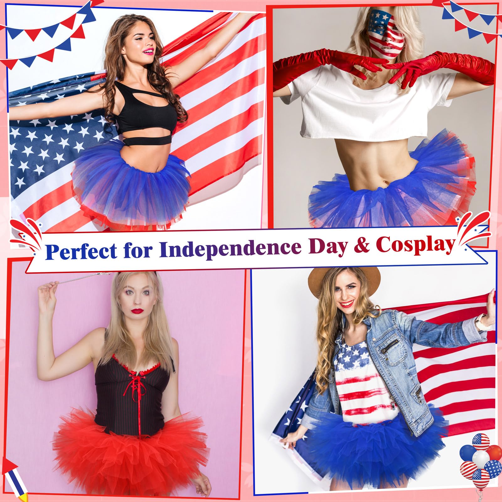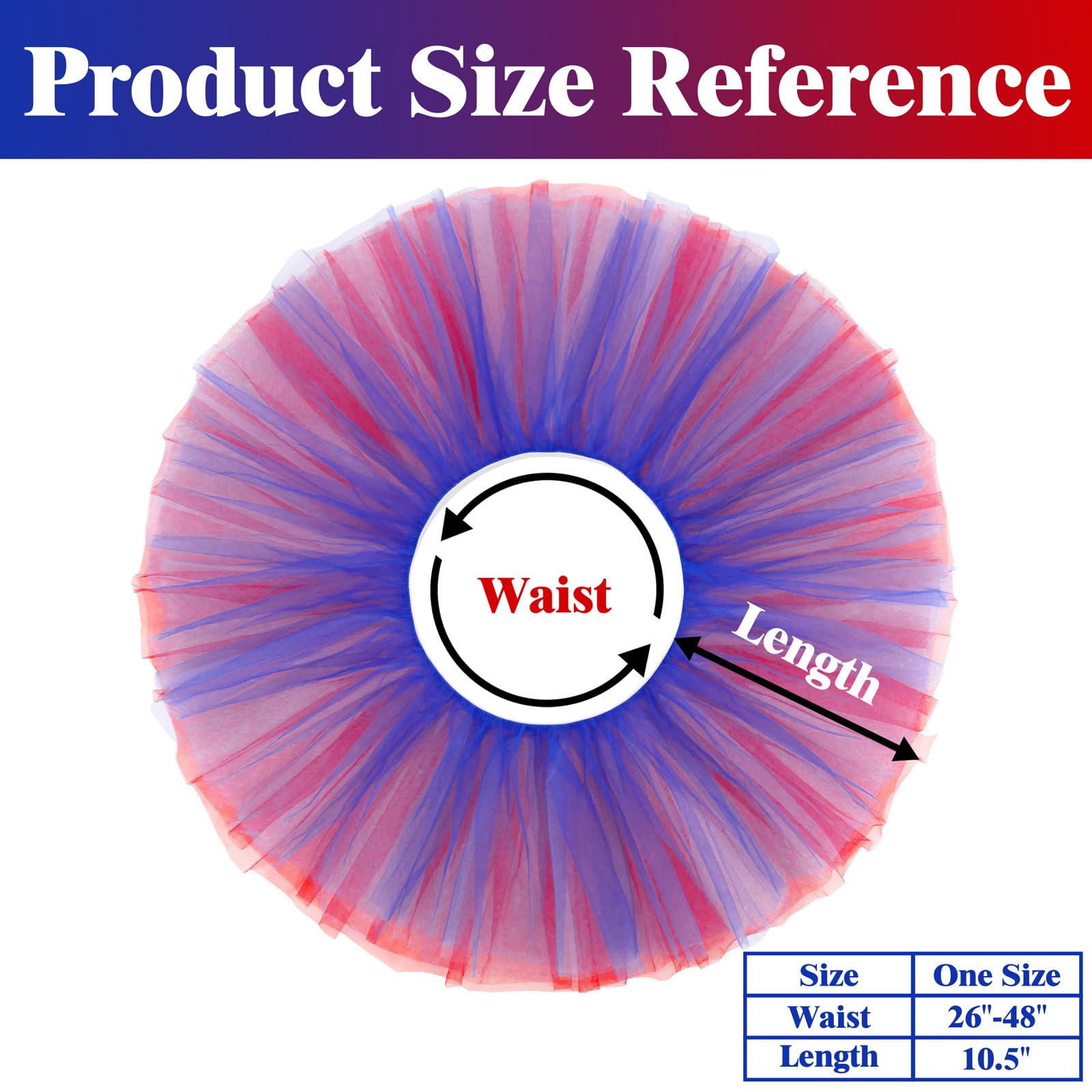 PERFECT FESTIVAL COSTUMES: The red white and blue tutu takes inspiration from the USA Flag, which mix the classic three colors to showcase patriotism while stylish and vitality. You can wear the womens 4th of July outfit at any party or celebration about Independence Day, National Day, Flag Week or Patriots Day! Different colors meet different roles. The black tutu is perfect for Halloween! The green tutu is suitable for St Patrick's Day! And the neon tutu is a wonderful 80s costume for women!