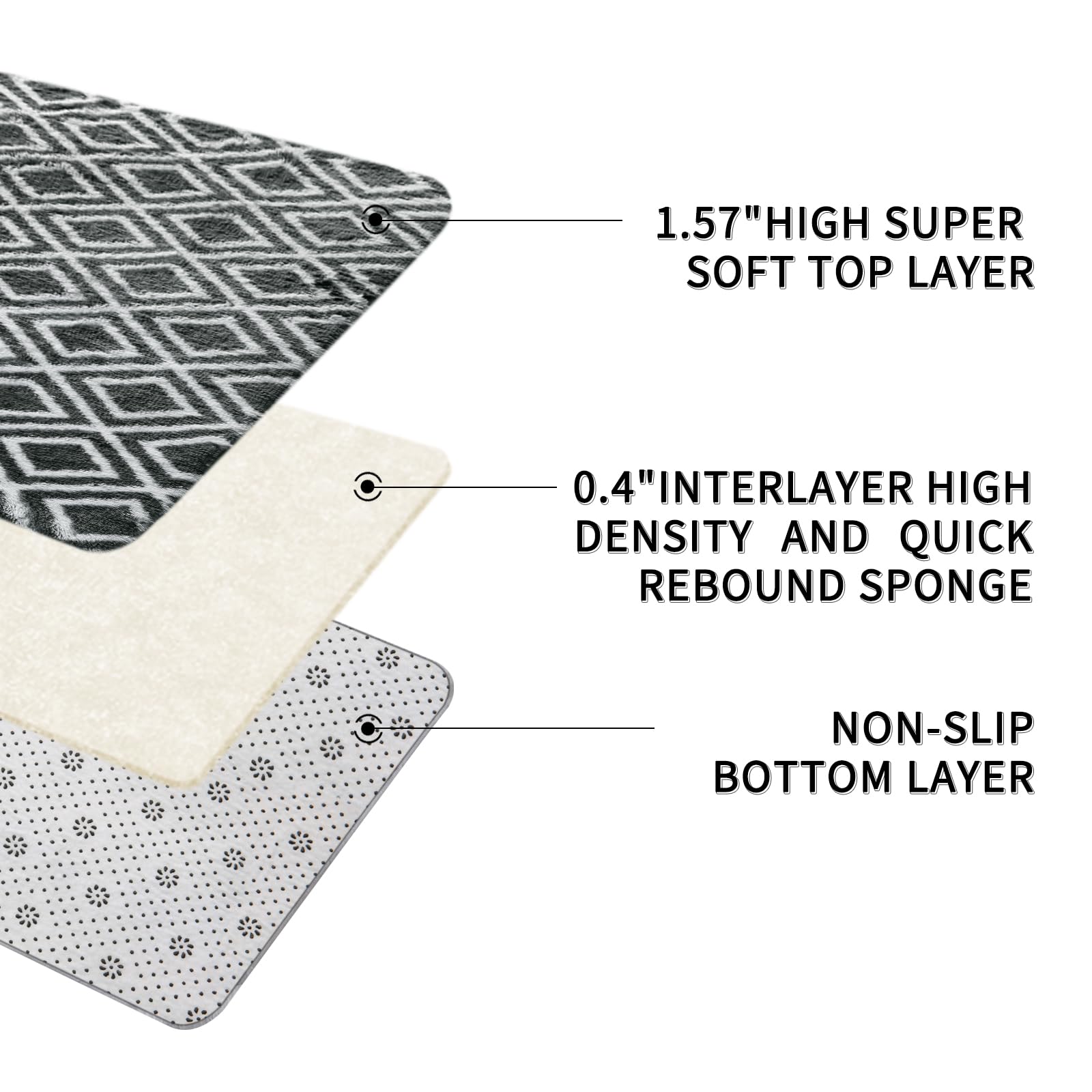 【SUPER SOFT FEELING】- The Area Rug is made of fiber material, super soft feeling and velvet can absorb dust. Middle is high resilience sponge can reduce pressure on you feet and enhance the softness.you can freely lie on it to relax or play games with the family.