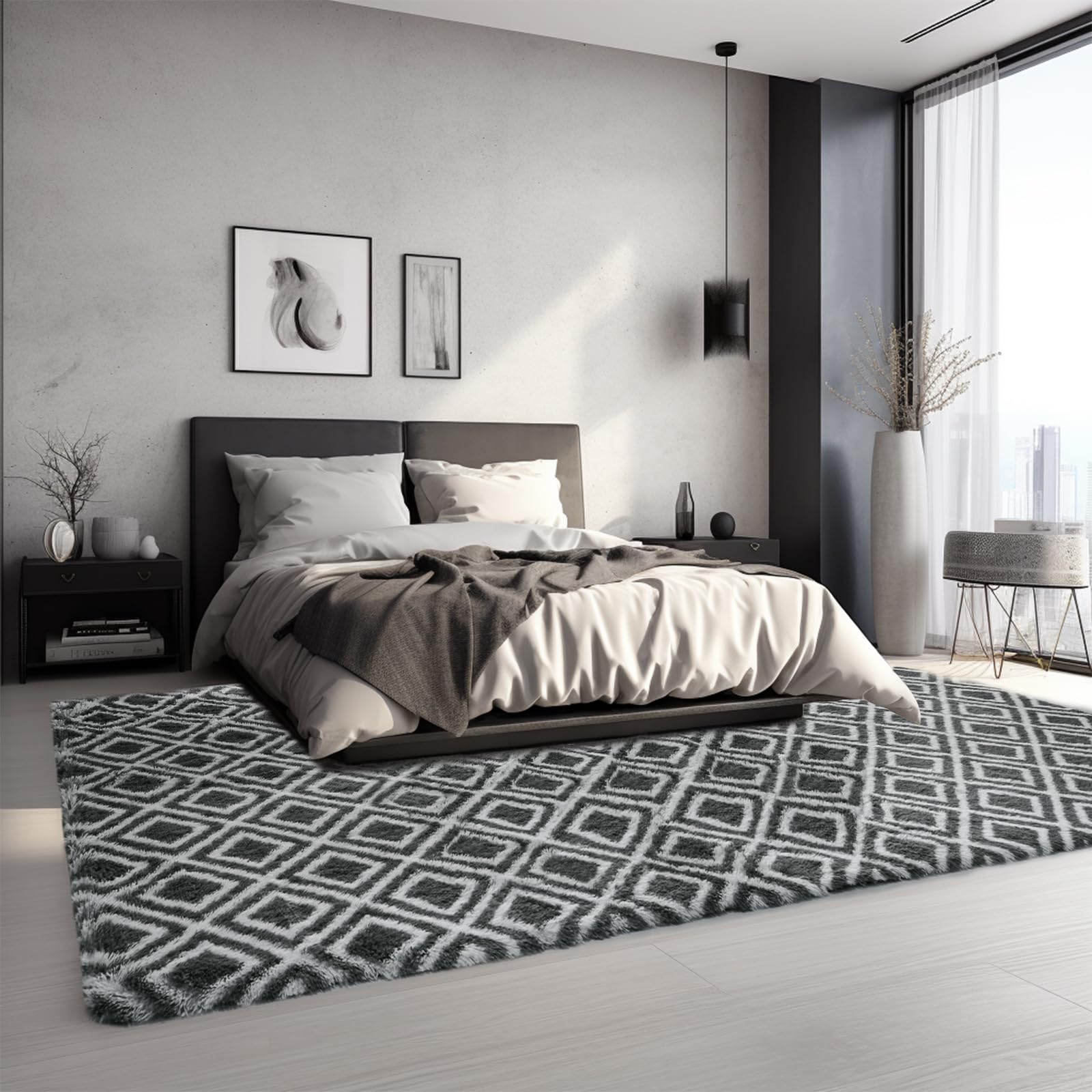 【LARGE SIZE 】- Large Area Rug Shag Shaggy Carpet Soft Plush Furry Bedside Rug is approx 4 cm high, soft long hair surface, and 10mm thick sponge interlayer, not easy to shed, not easily contaminated by dust, no odor, not easy to fade.