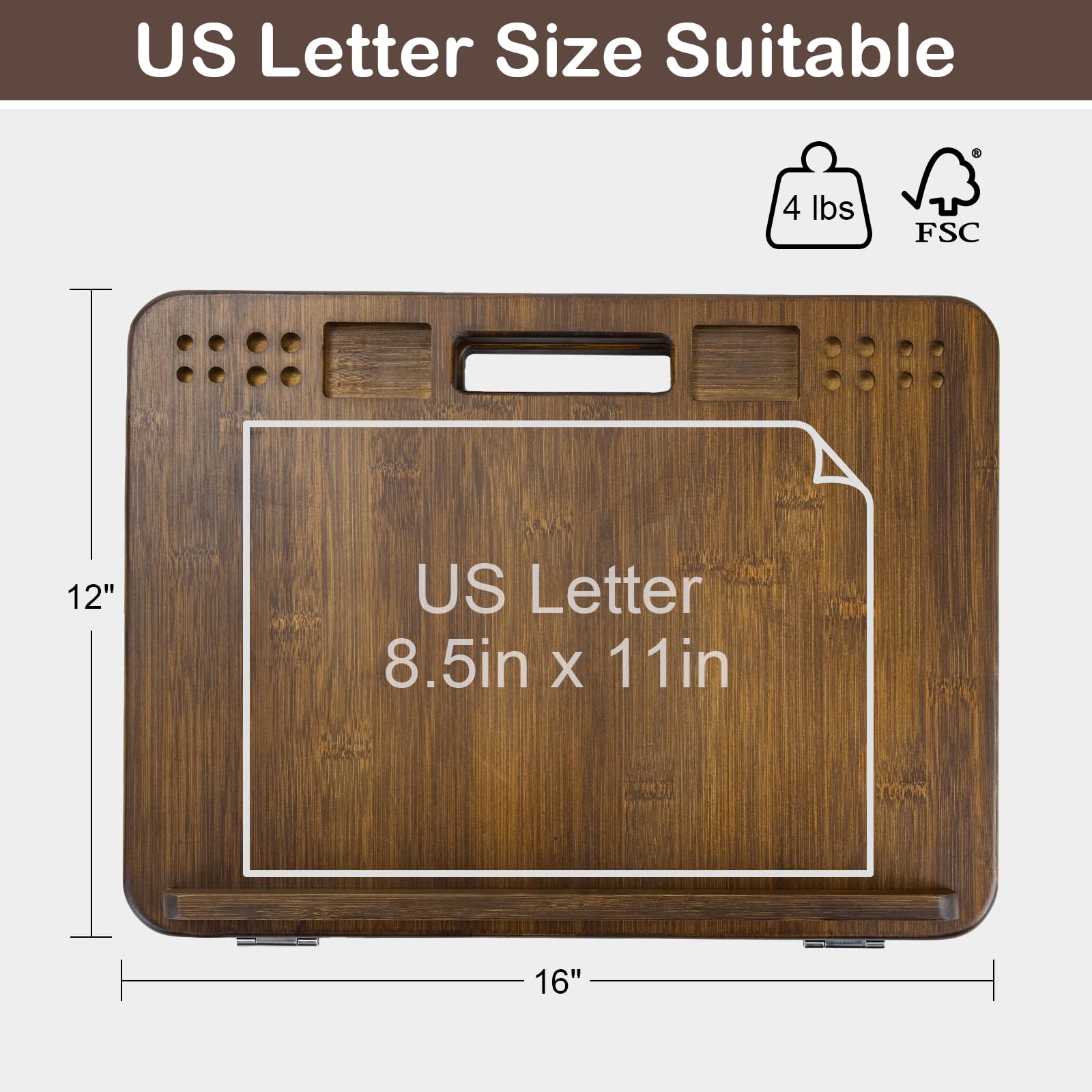 Compact and Portable Size – Measuring 16 inches by 12 inches and weighing just 4 lbs, this portable art board is easy to carry and perfectly fits US Letter size (8.5 x 11 inches) paper, making it a convenient lap desk or travel sketch board.