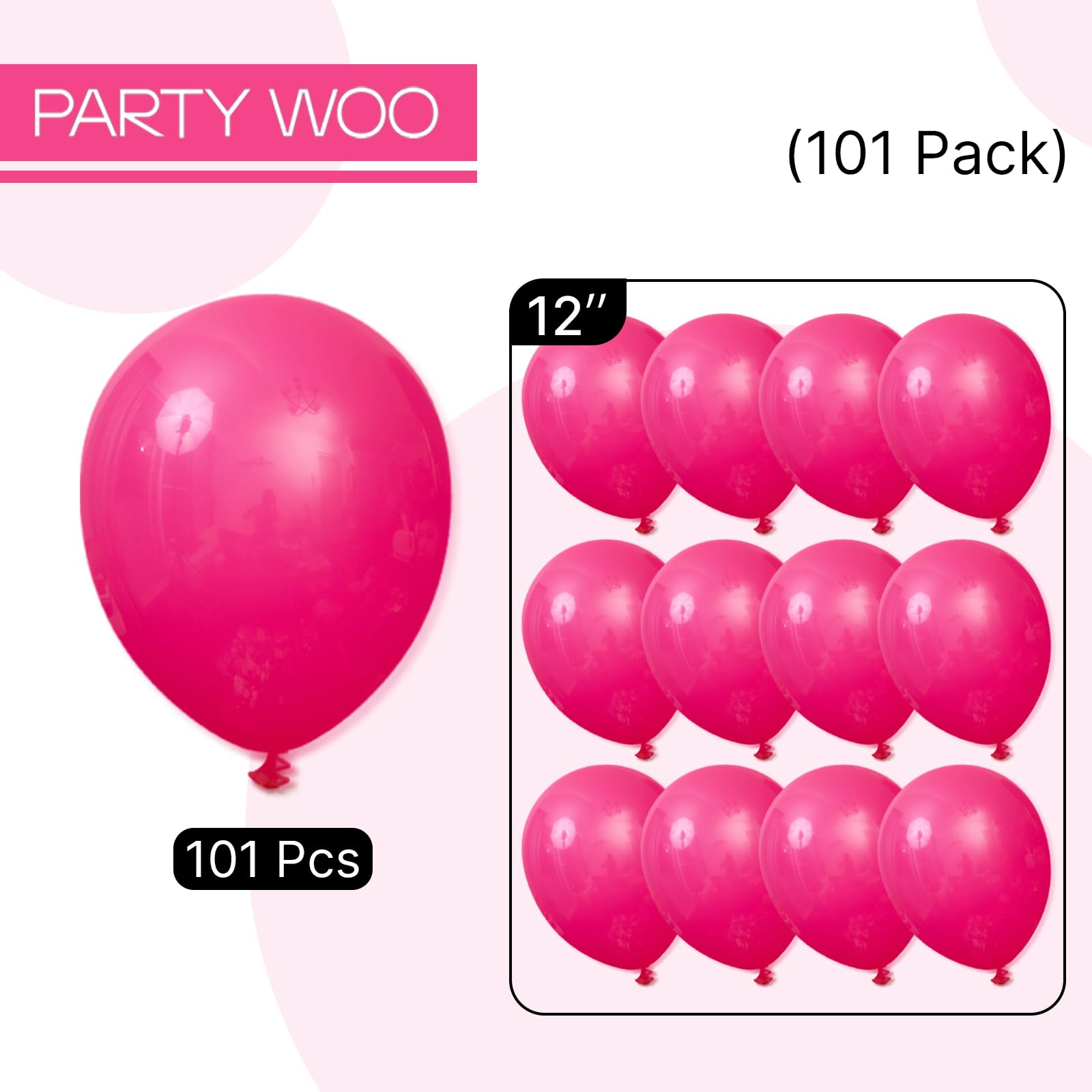 Package includes: 12 inch hot pink balloons (101 pcs), in a solid consistent color that brings vibrant energy, can widely used in wedding decorations, birthday decorations, baby shower decorations and adding a vibrant touch to make your party bright.
