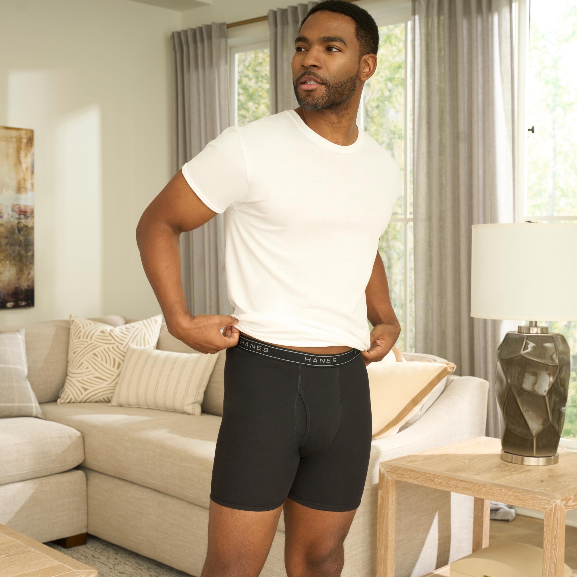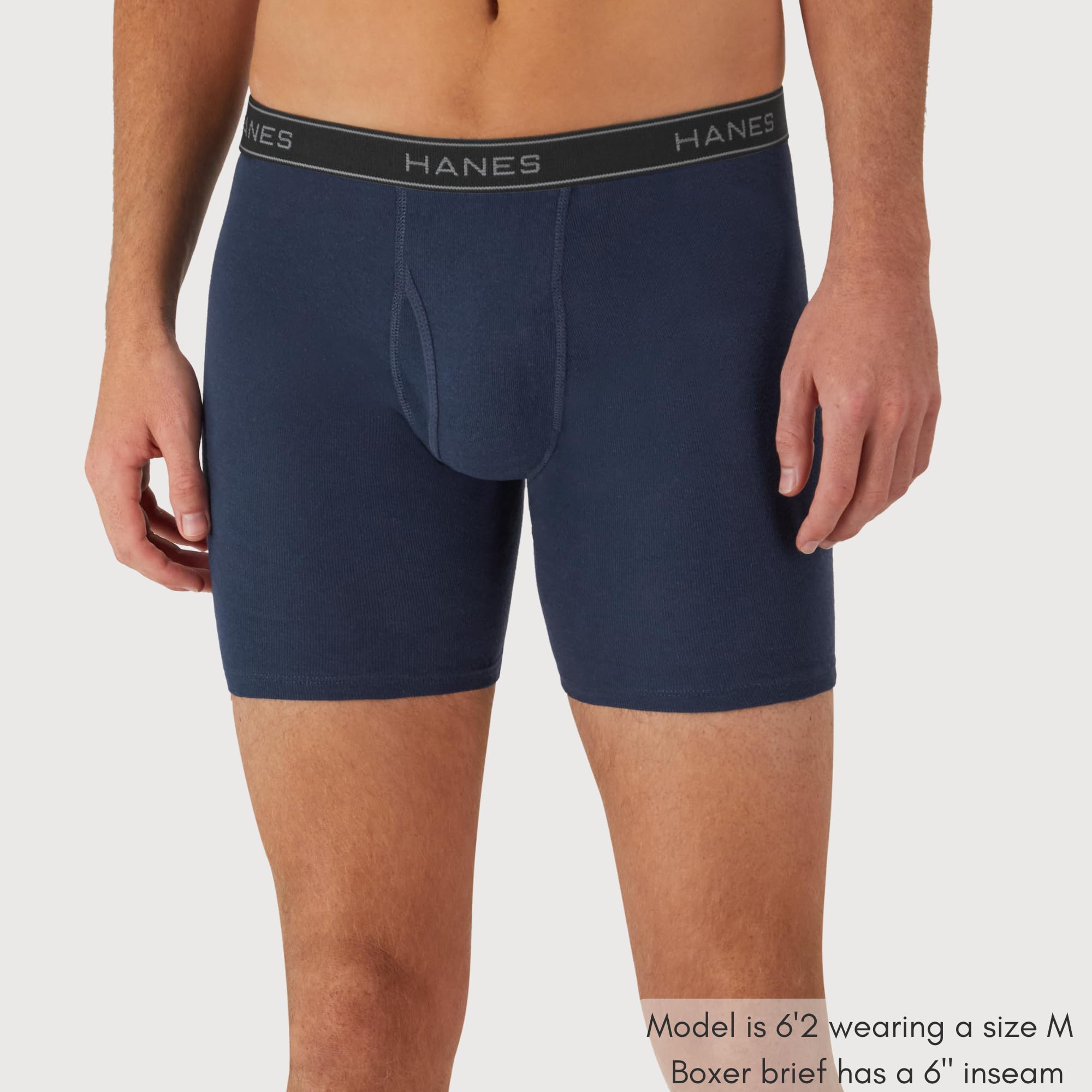Description This Hanes value pack includes men's boxer briefs crafted from soft and breathable cotton or a cotton-rich blend (depending on the color) for everyday comfort. You'll appreciate the no-ride-up fit, smooth Tagless interior, and an improved Comfort Flex waistband that now adjusts to fit you. Moisture-wicking Cool Comfort fabric helps keep you cool and comfortable in this men's underwear- no matter how long your day is. Stock up and save with a multi-pack of men's boxer briefs so you can always keep a clean pair of Hanes underwear on hand.