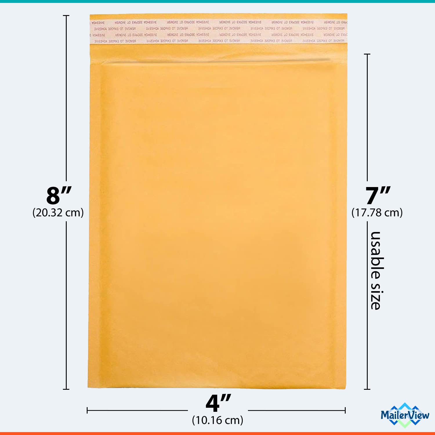 4x8 Inch, Bubble Mailers, Kraft, Number #000, 500 Pack, Made in USA, Padded Envelopes, Package, Bubble Envelopes, Padded Mailers, Envelope Mailers, Shipping Packages, With Self Seal Tape, 500 Pack
