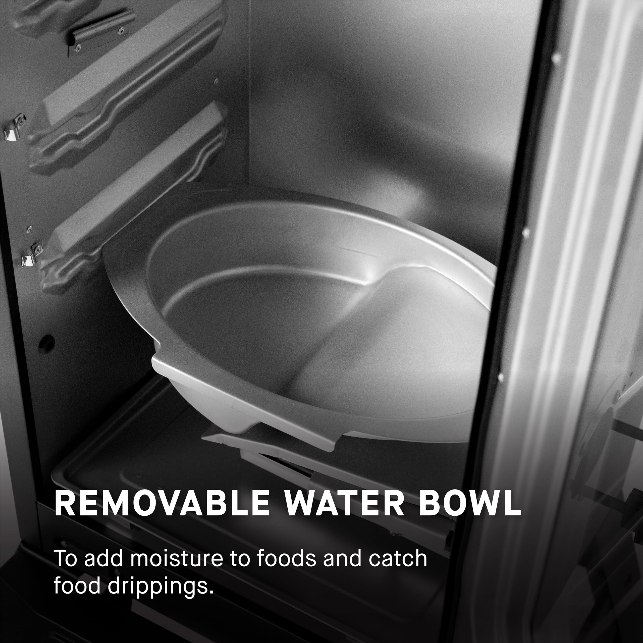 Spacious vertical design that fits up to 6 chickens, 2 turkeys, 4 pork butts or 4 racks of ribs