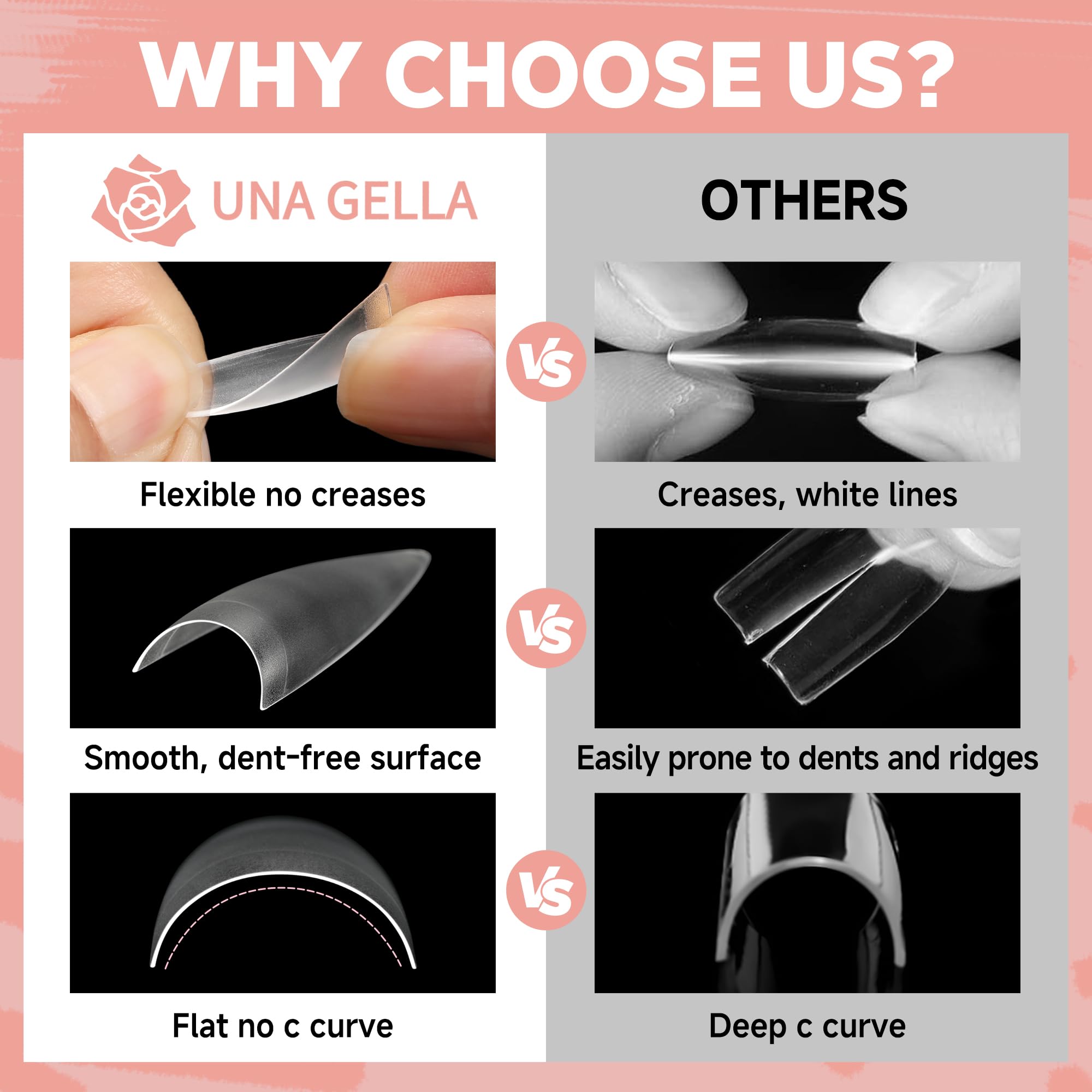 WIDELY USE: UNA GELLA nail tips strive to be your trusted choice. The flawless clear nail tips are great for beginners and professional nail artists, for nail salons and home DIY nail art salon! It can also be used with nail polish, dip powder and rhinestones to DIY the style you want.