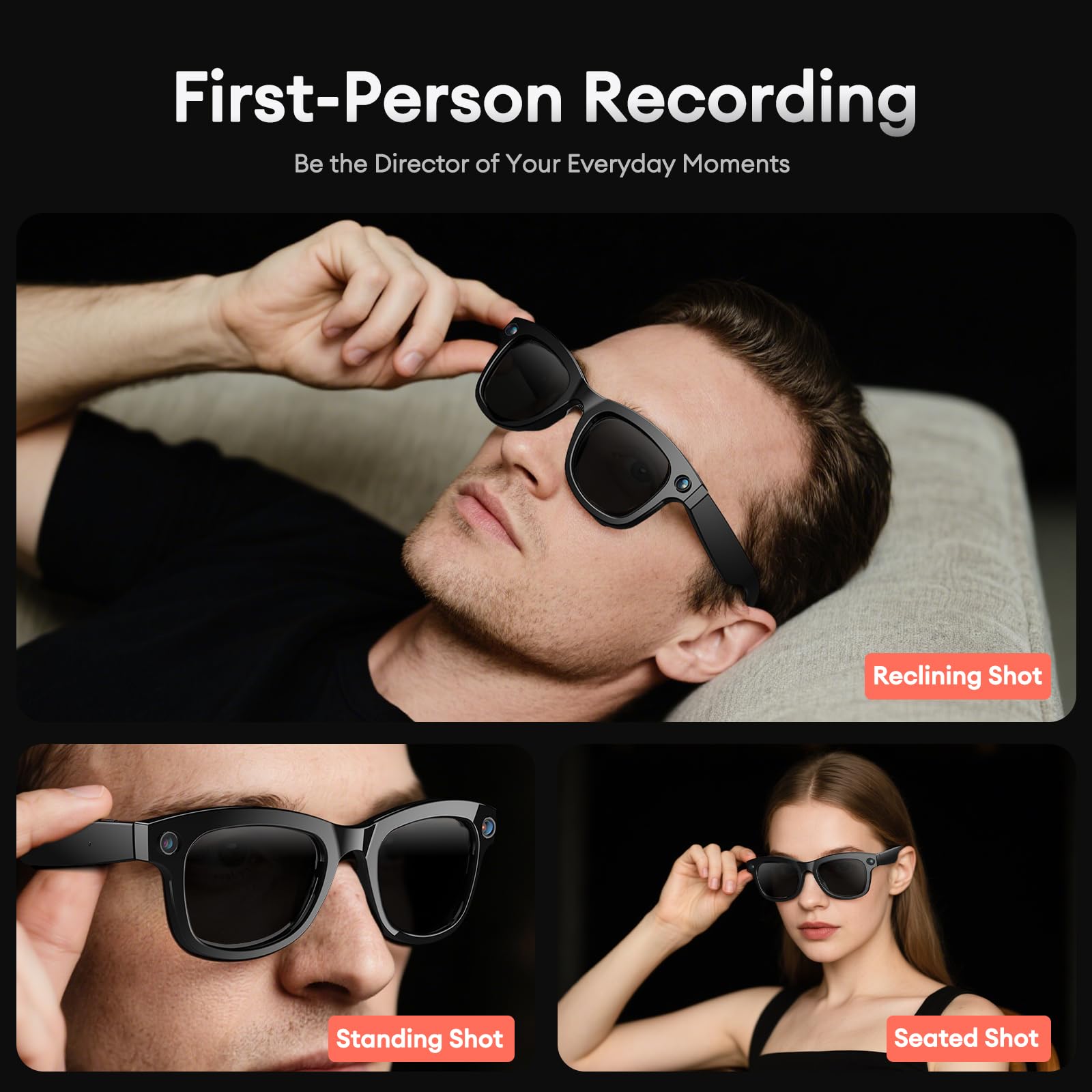 Dual-Mic ENC & Voice Recording for Crystal-Clear Sound: AI smart glasses equipped with dual microphones and ENC technology reduce background noise and enhance voice clarity. Ideal for capturing clean audio in voice notes, interviews, or ambient recordings—even in noisy environments.