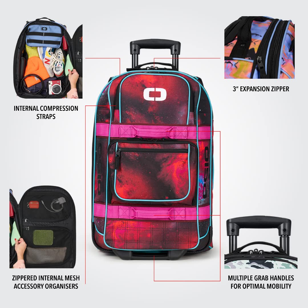 2-stage Pullman handle - internal compression straps - two low profile external pockets - Custom OGIO ID sleeve