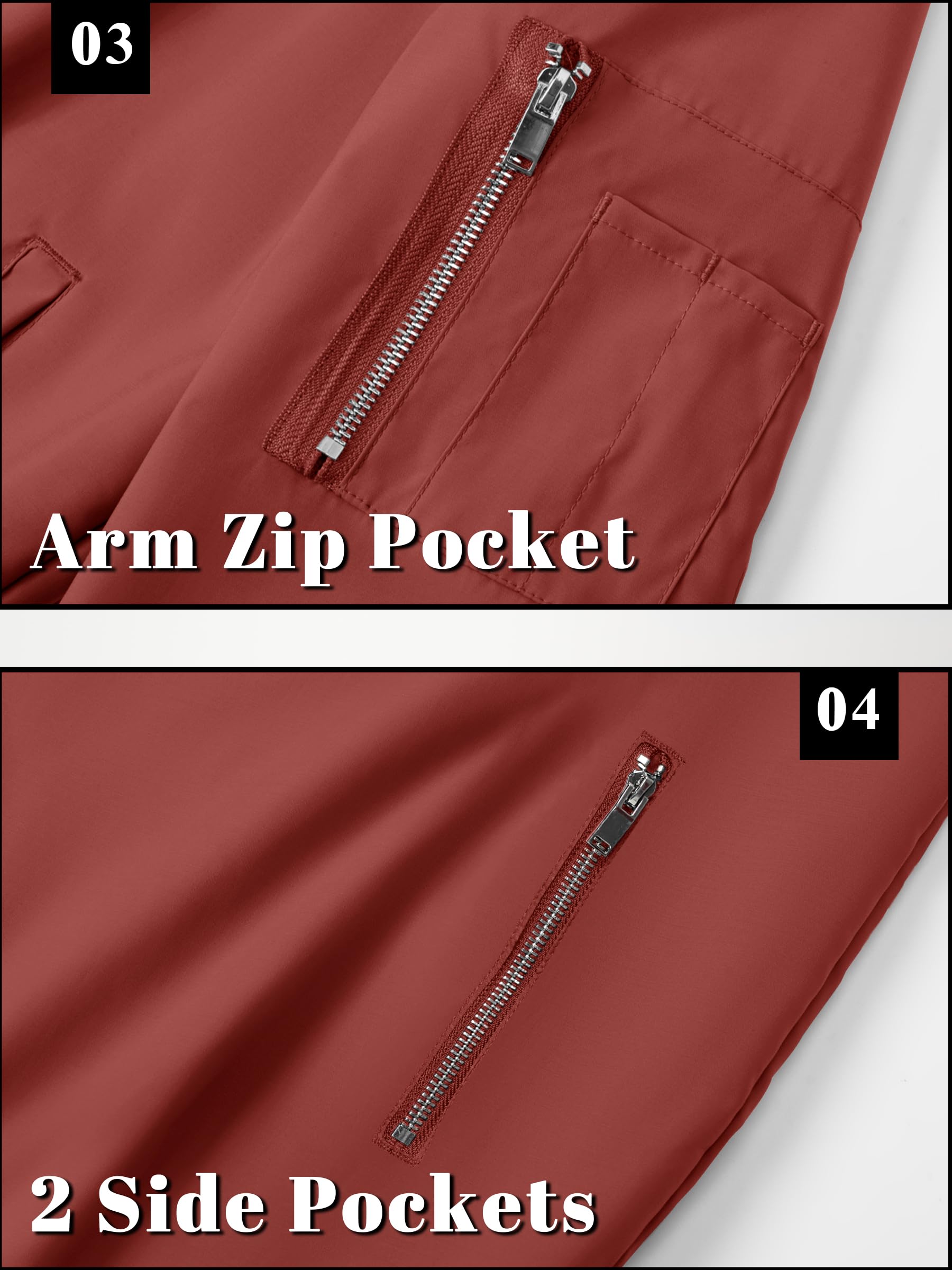 MULTI-POCKETS: 1 zipper sleeve pocket, 2 zipper slant hand pochets, 1 inner pocket