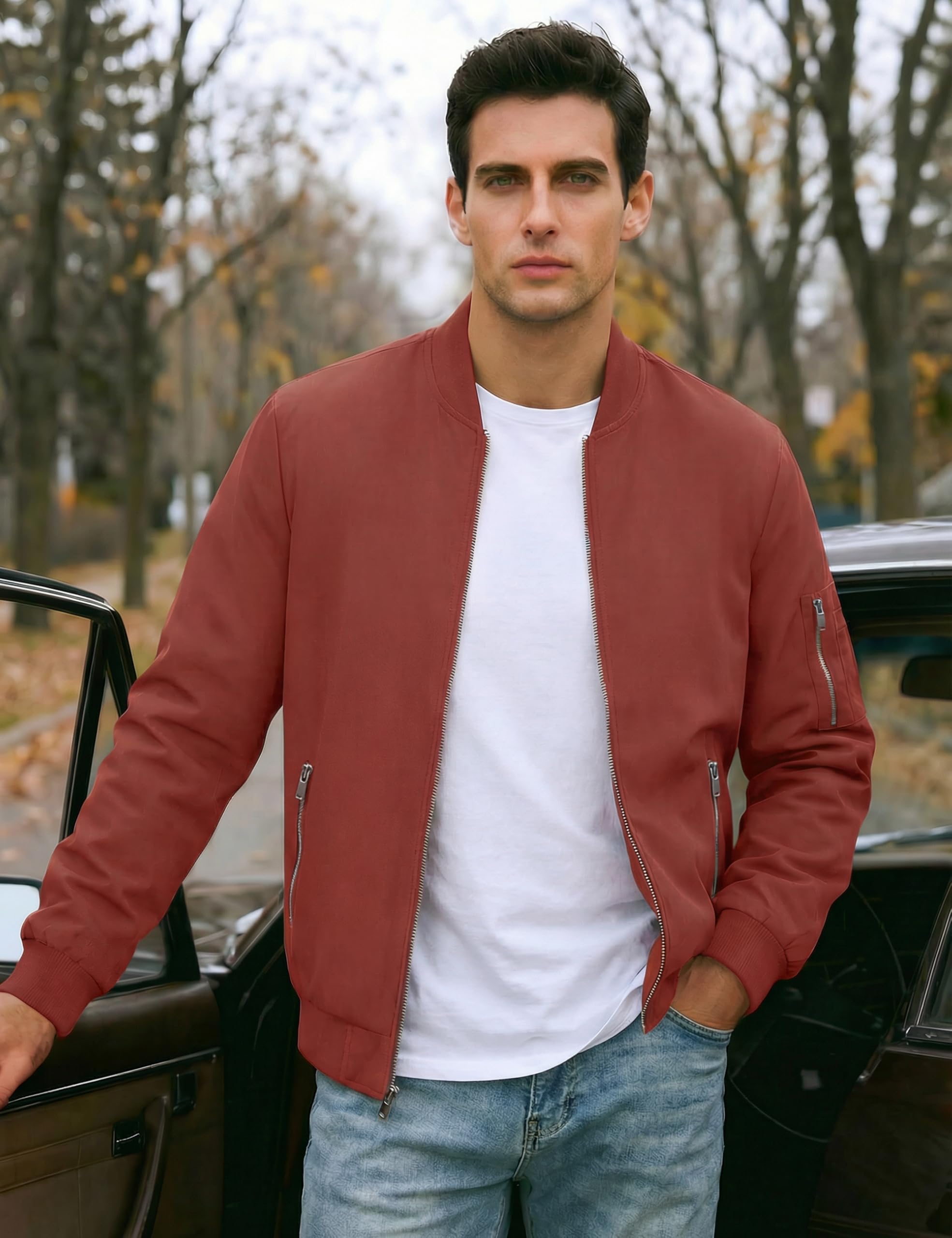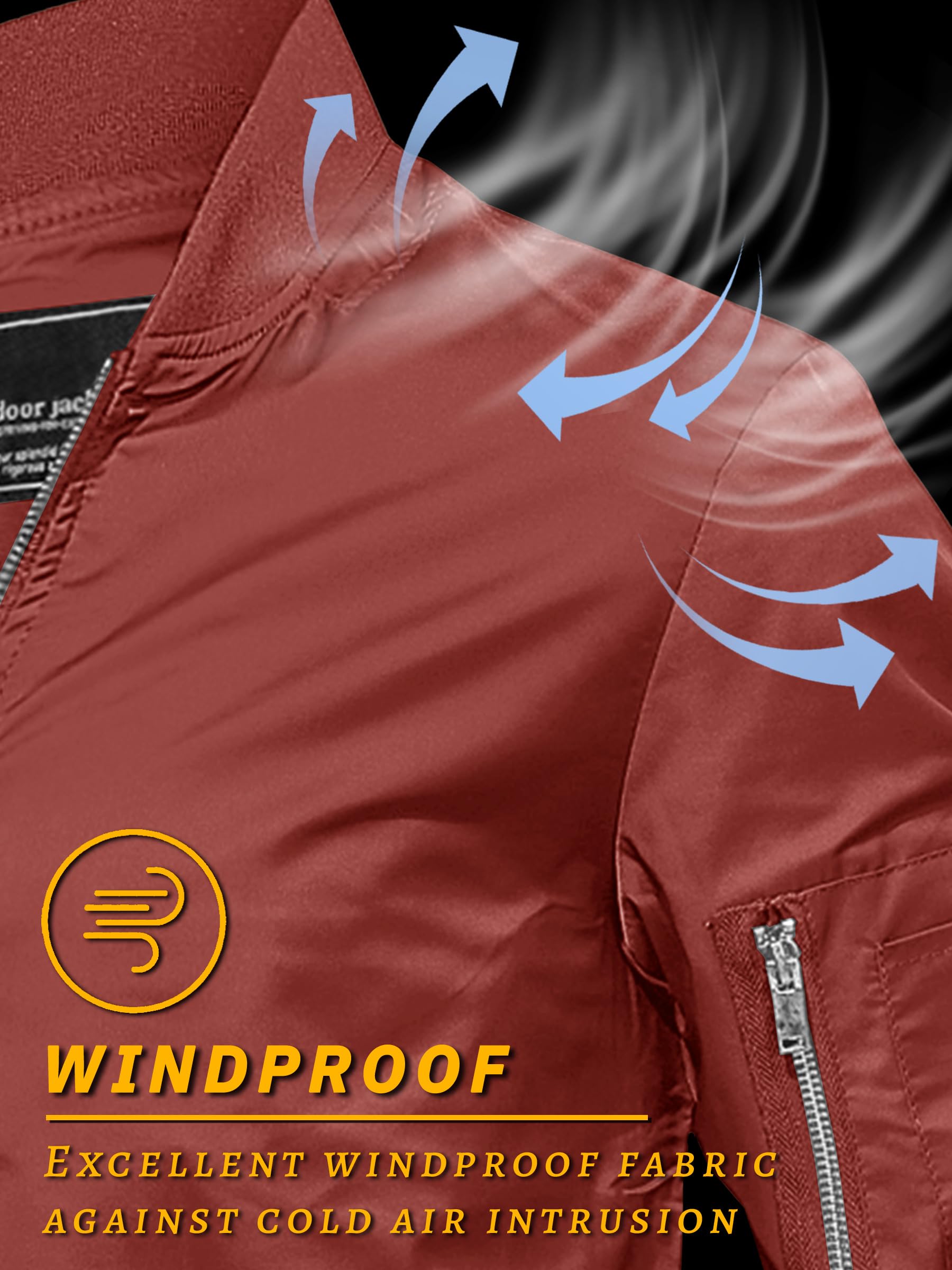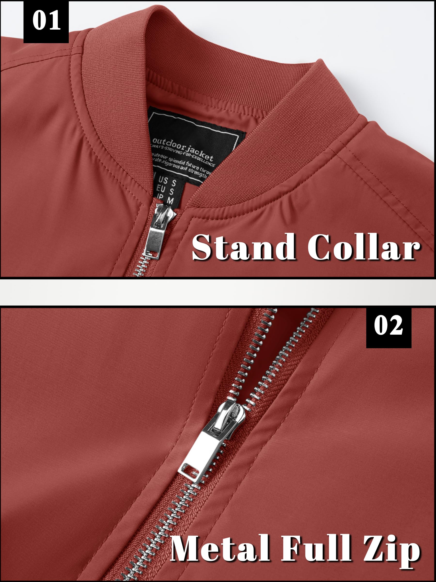 Full zipper stand collar bomber jacket, The zipper head is on the left