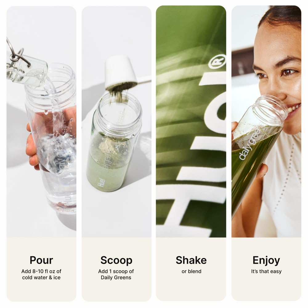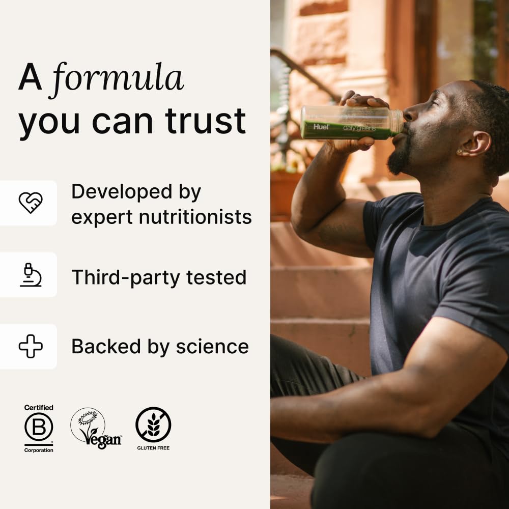 YOUR NEW FAVORITE ROUTINE: Drink Huel Daily Greens once a day, first thing in the morning *with* your breakfast, not instead of it! Daily Greens fits seamlessly into your daily morning routine