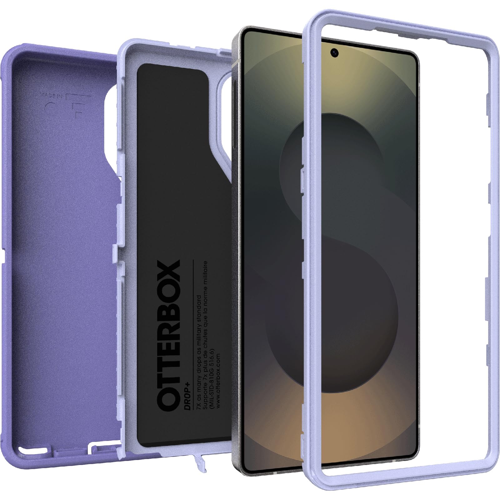 Legendary durable Samsung Galaxy S25 Ultra case, Defender Series, with a multi-layer construction guards your device from serious drops, dirt, scrapes and bumps. Wireless ready, it works with Qi charging. Plus, the included holster does double duty as a belt clip or hands-free kickstand. Specifications: Compatible With: Samsung Galaxy S25 Ultra . Drop Height: DROP+ | 5X as many drops as military standard (MIL-STD-810G 516.6) . Dimensions: 6.87 x 3.54 x 0.57 in | 17.45 x 8.98 x 1.45 cm . Weight: 0.15 lbs | 67.43 g . Materials: Polycarbonate shell . Synthetic rubber slipcover . Polycarbonate holster . Case Features: Multi-layer defense features a rubber outer cover for better grip and impact absorption while the rigid inner shell offers extra protection . Durable rubber outer cover provides drop-resistant grip . Port covers block dust and dirt . Bumpers around the camera protect against hard hits . Screen lip keeps display hovering safely off surfaces . Holster clips to bags and packs / Kickstand for hands-free viewing . Wireless charging compatible . Works with OtterBox screen protectors . Fully compatible with 5G networks . Limited lifetime warranty supported by hassle-free customer service .