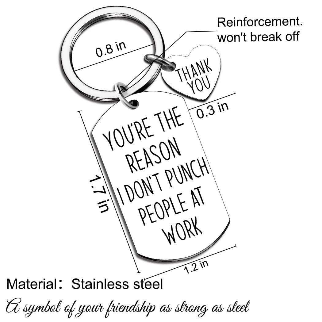 Employee Appreciation Gifts / Boss Day Gifts / Assistant Principal Gifts: This Friendship Keychain Is Engraved With“ You're The Reason I Don't Punch People At Work“, A Funny Saying On It That Will Be Sure To Make Your Co-Worker Boss Laugh! Perfect Funny Gift For Men And Women!