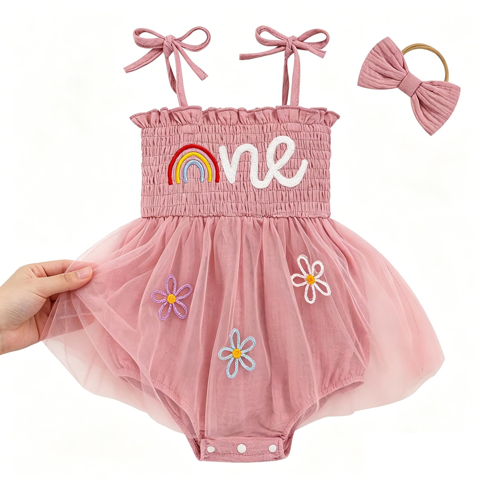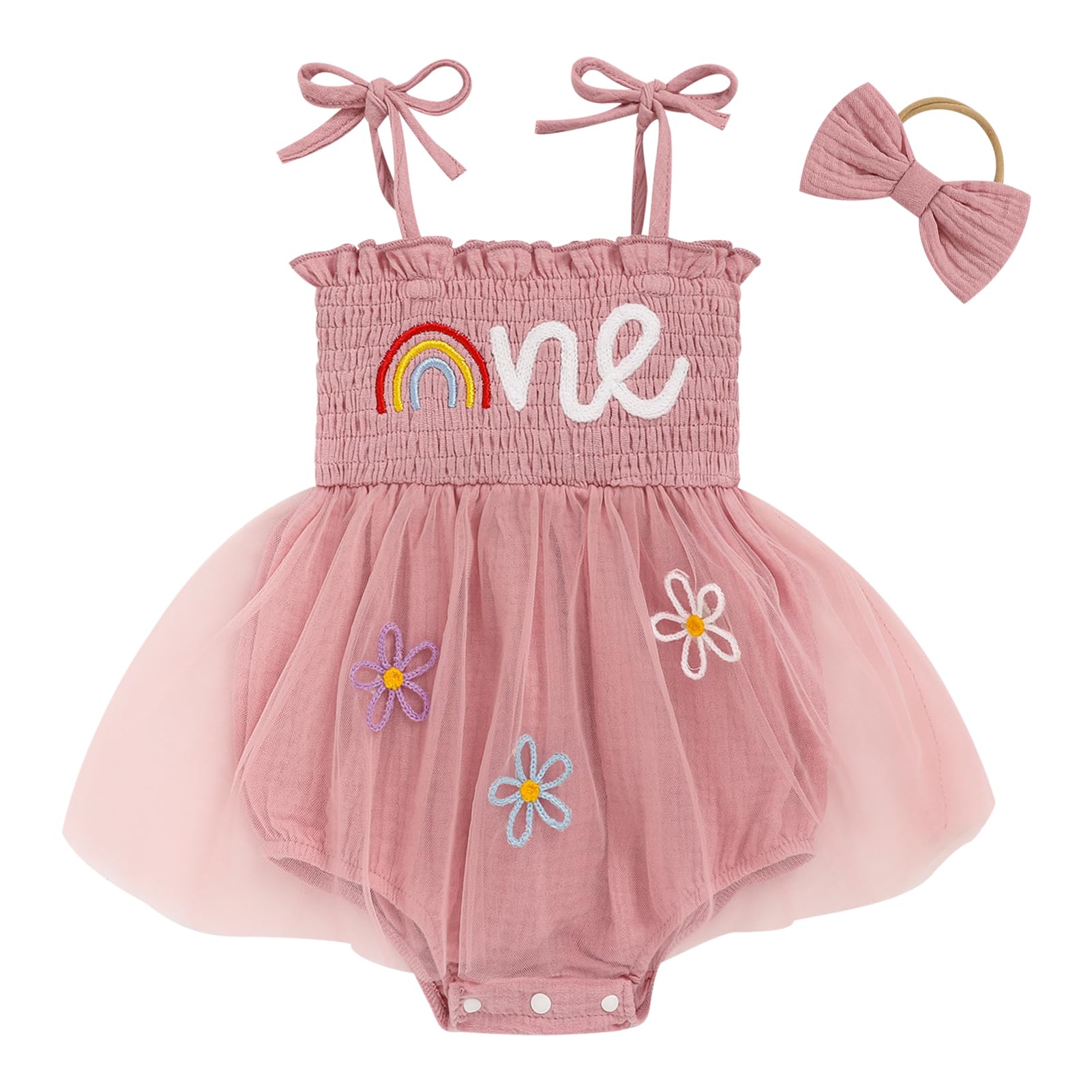 Design: Newborn baby girl playwear romper dress with sleeveless, solid color, multi-layered tulle, Snap leg openings for easy diaper changes, easier morning for novice mother.Cute princess 1st birthday outfit, fashionable and adorable embroidery ONE printed themed birthday clothes perfect for creating beautiful memory of her first birthday.