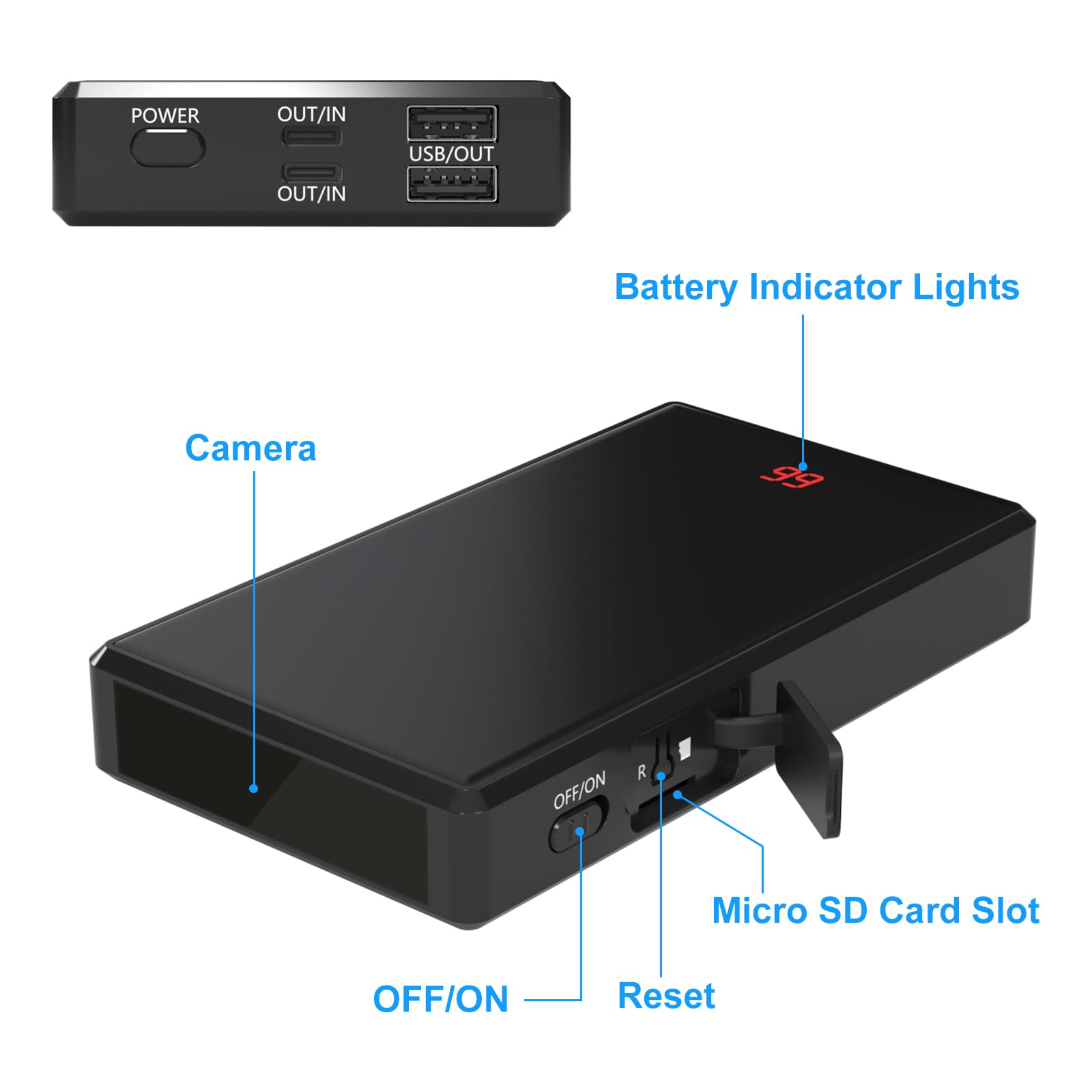 Convenient 10000mAh Power Bank: Not only does this device serve as a reliable charger for your gadgets, but it also doubles as a security camera. Its 10000mAh capacity ensures your devices stay charged while keeping watch over your space.
