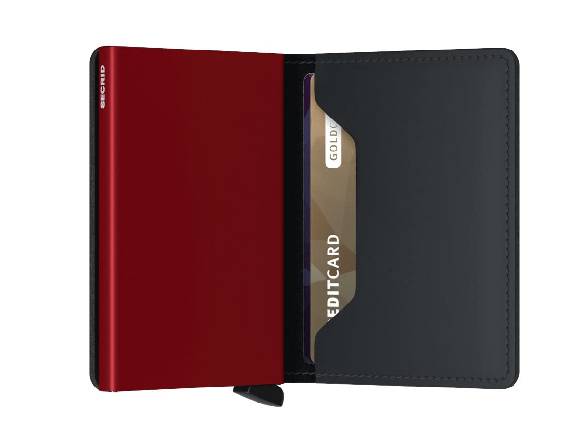 Description Classic, elegant and very trendy: the wallet from Secrid. The compact and trendy financial manager is the latest trend with its equipment. Easy to open wallet One note compartment 2 leather card slots with space for up to 4 cards Built-in card protector with space for up to 6 cards and with patented mechanism that dispenses the cards gradually. Card protector is equipped with RFID protection. Serial number inside, serves as a certificate of authenticity and registration on the manufacturer's website. Unfolded 14.5 cm wide.