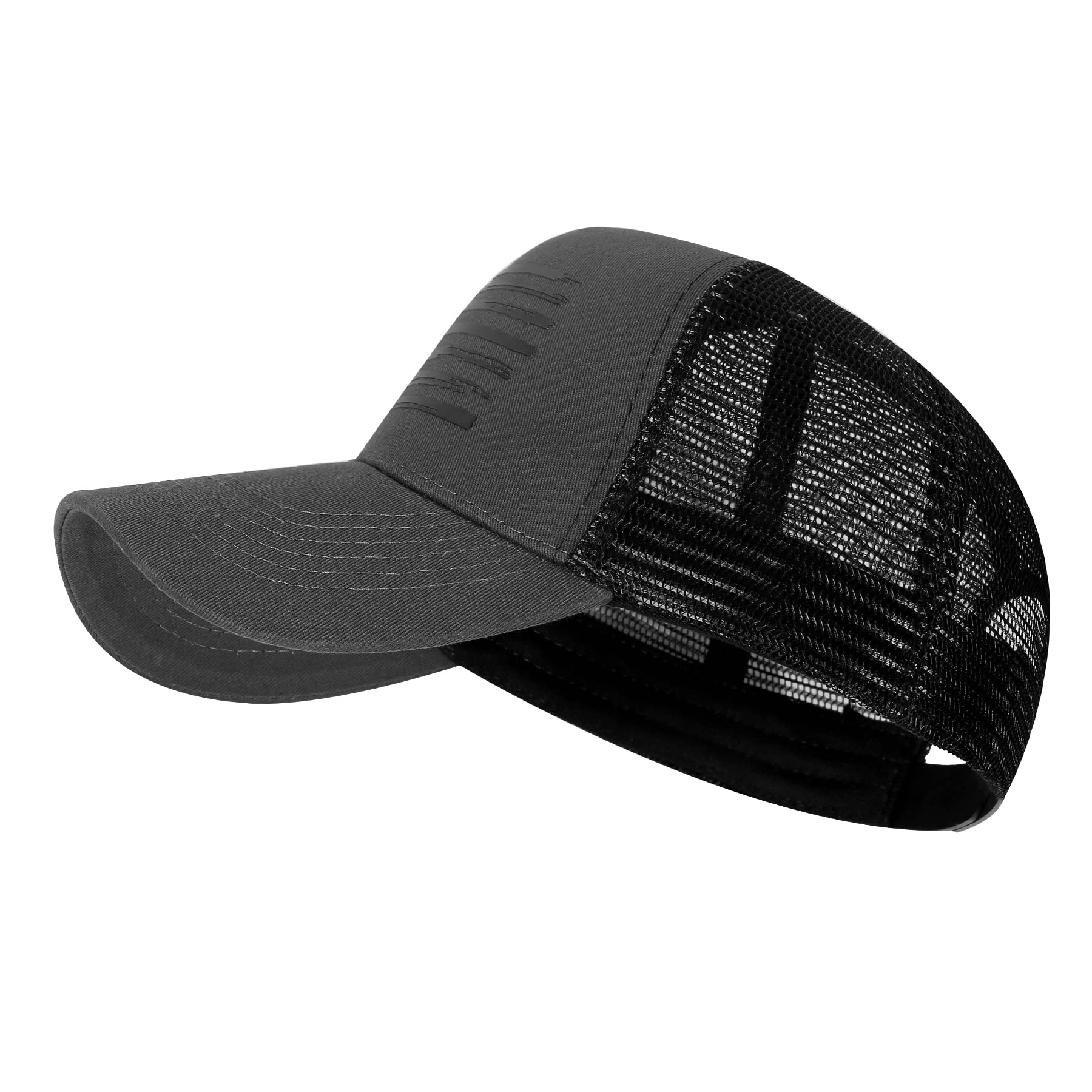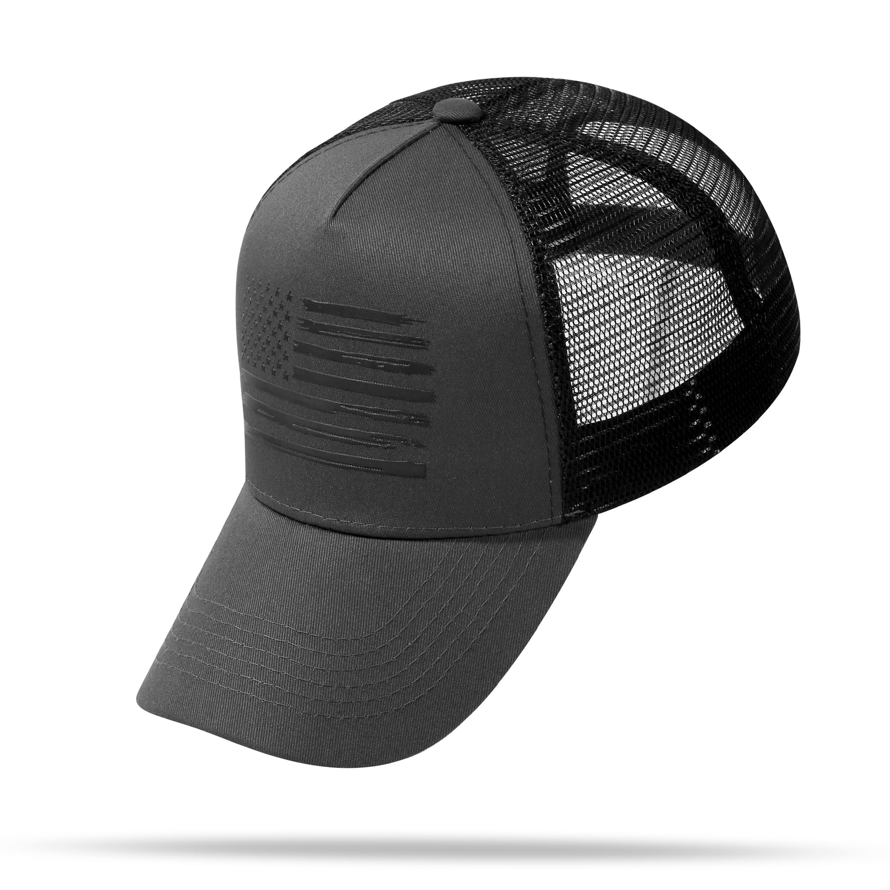 Versatile Style: Classic 5-panel trucker hat design, boasts precision - stitched seams that enhance its a well - contoured brim that retains its shape. Features a stylish distressed American flag graphic printed on the front panel, showcases the unique design of the baseball cap