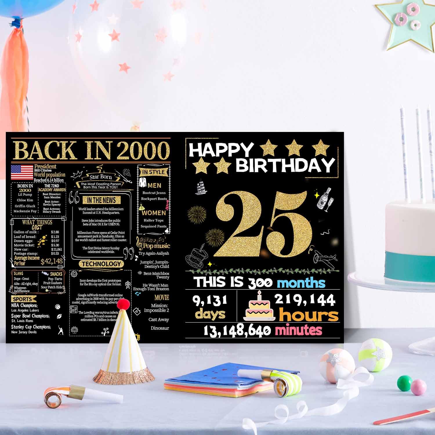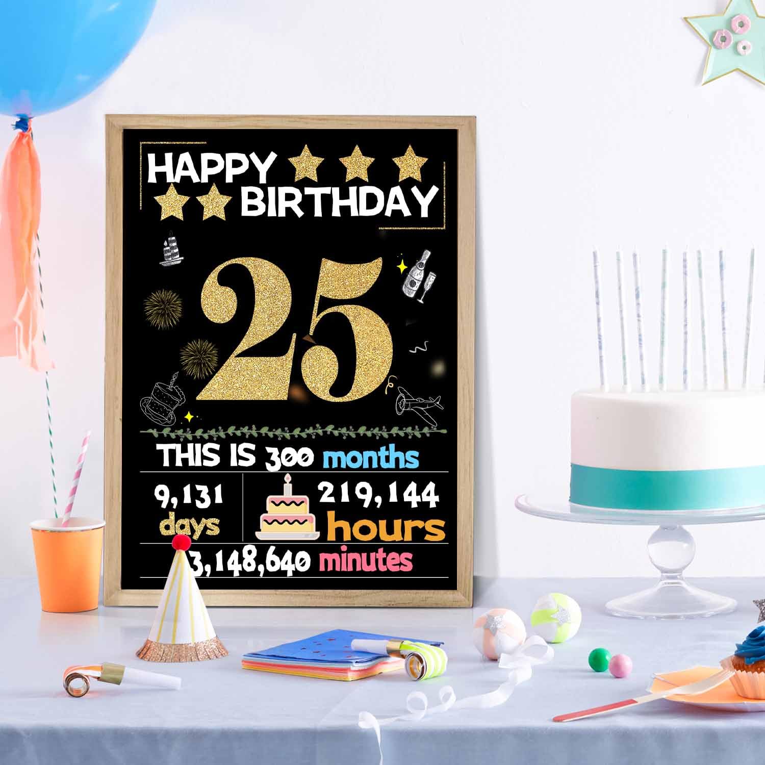 【25th Birthday Gift】The perfect 25th birthday for Her Him, it can be used as a birthday card, a poster, photo prop, party decoration, or even a photograph. Prepare a commemoration significance gift for daughter son.