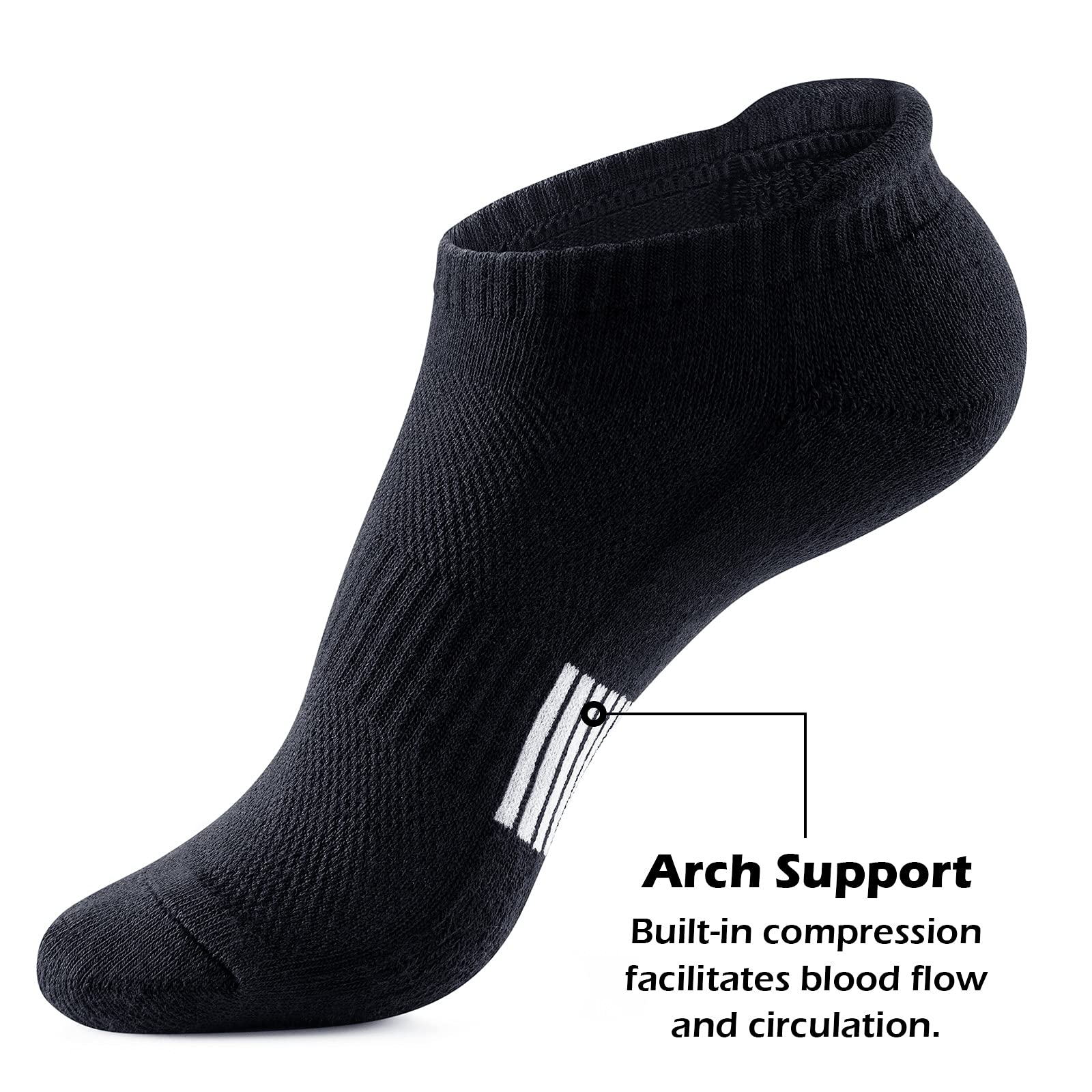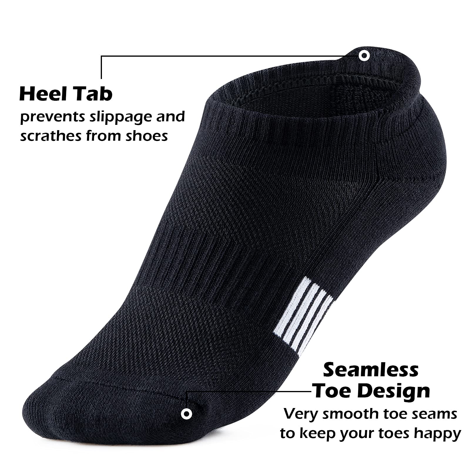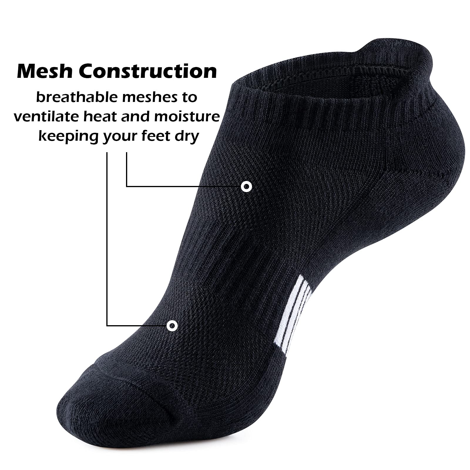 Packed with Functionality: Heel tab to prevent heel scratches,slipping and blisters; cushioned sole & arch support to reduce friction; reinforced meshes for heat and moisture ventilation!
